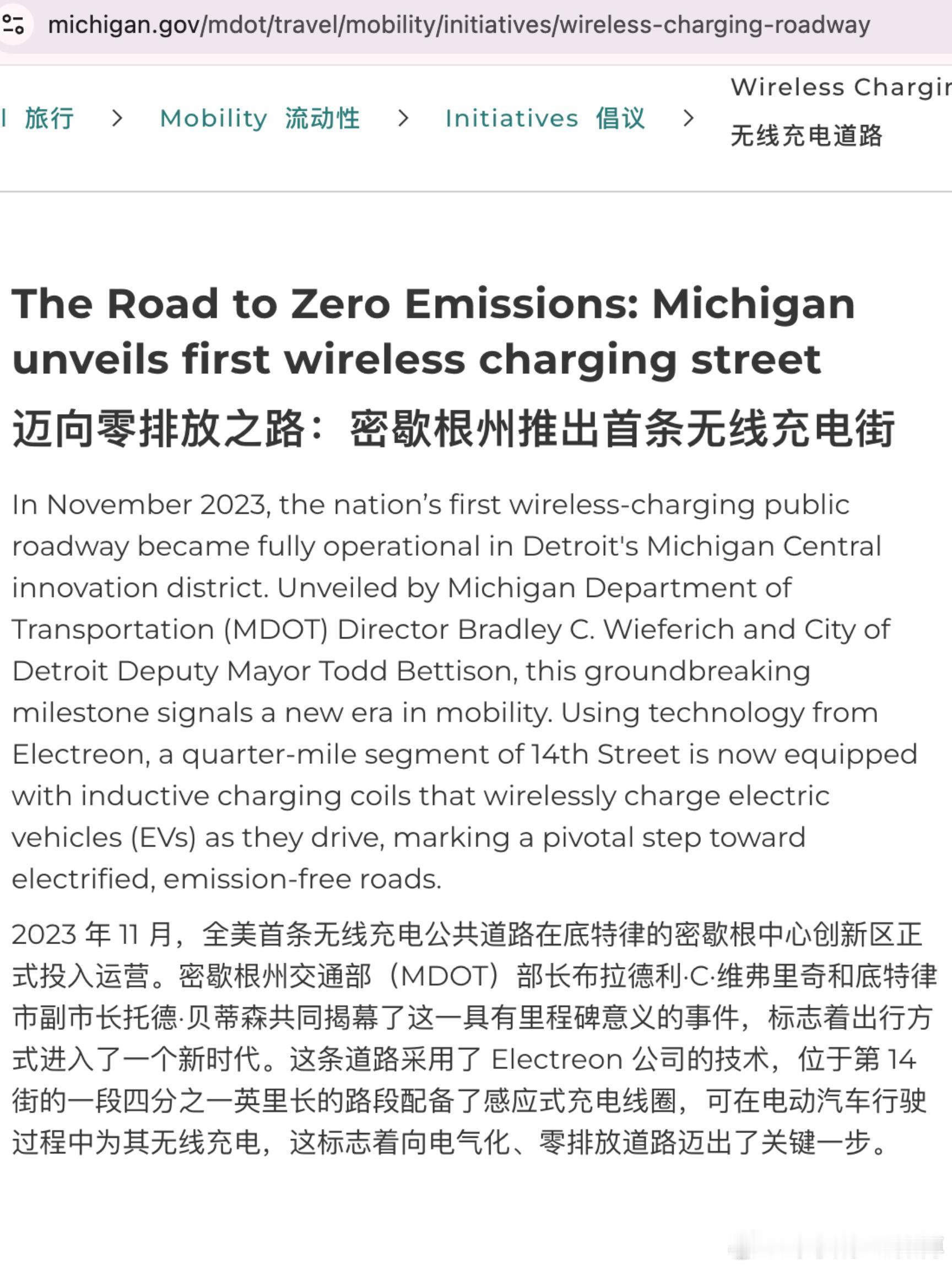 马斯克又赢麻了……电动车主们,你们担心的“里程焦虑”和“排队充电”噩梦,可能真的有解了!这不是科幻电影,这是美国密歇根州底特律的真实创新。全美第1条投入公共使用的无线充电道路已在密歇根中央创新区(Michigan Central)正式运行。热点观点华俊竹有话说全网热点共创计划