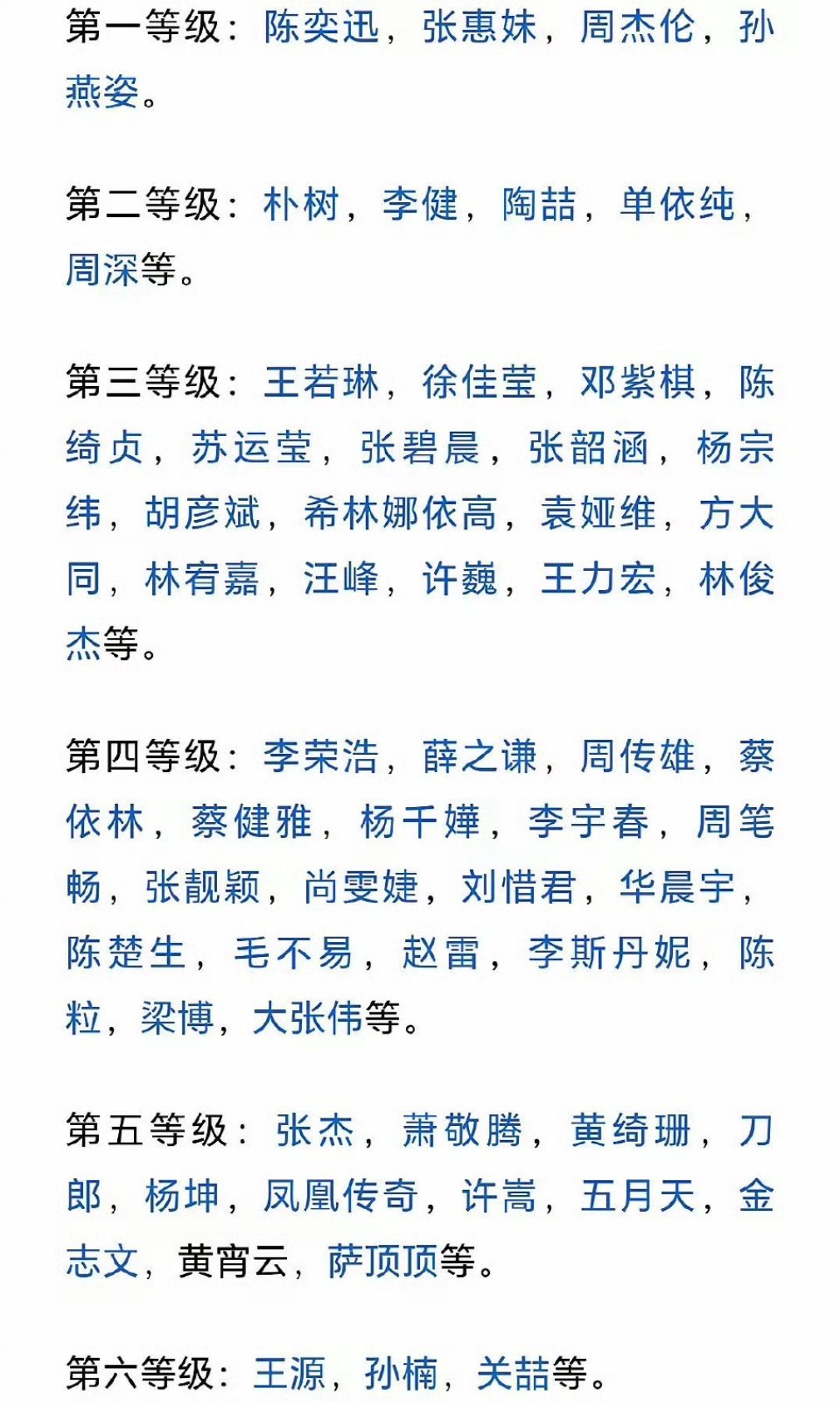 娱乐圈的歌手们也有等级划分
