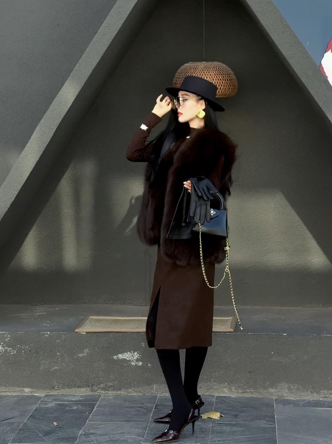 如果你有一件“棕色外套”,这样配色更时髦高级👀棕色外套真是秋冬衣柜里的
