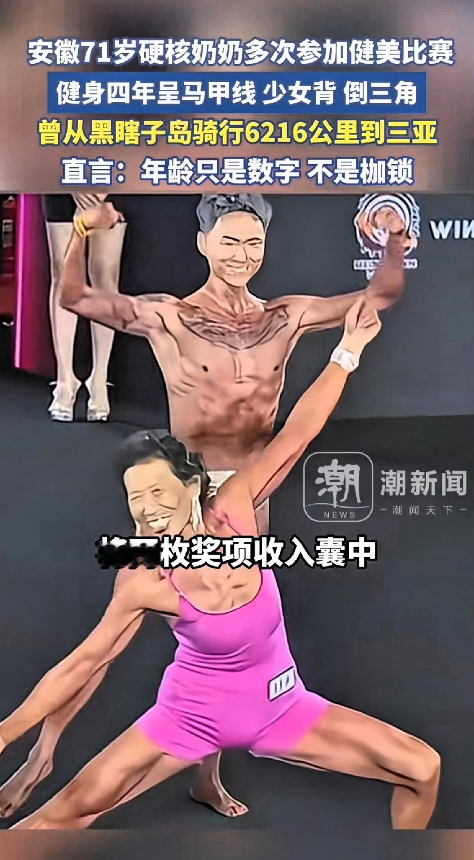 安徽马鞍山71岁硬核奶奶孙慧明多次参加健美比赛,健身4年呈马甲线,少女背倒三角。 曾从黑瞎子岛骑行6216公里到三亚。直言年龄只是数字,不是枷锁。 奶奶每周至少去健身房训练五次,一次一两个小时,按身体五个部位分别练,12个一组,做4组。一开始她连器材都认不全,卧推从轻的5公斤开始,最重单边能推12.5公斤。 其实奶奶年轻时就和健身有过交集,上世纪80年代末因教练建议练过几个月,只是因工作家庭没坚持。现在她多次参加健美比赛,取得良好的成绩。 真佩服这位奶奶,因为热爱所以坚持,能够勇敢做自己喜欢的事,并且一直坚持下来。 “年龄只是数字,不是枷锁”在她身上体现得淋漓尽致,太让人佩服了!
