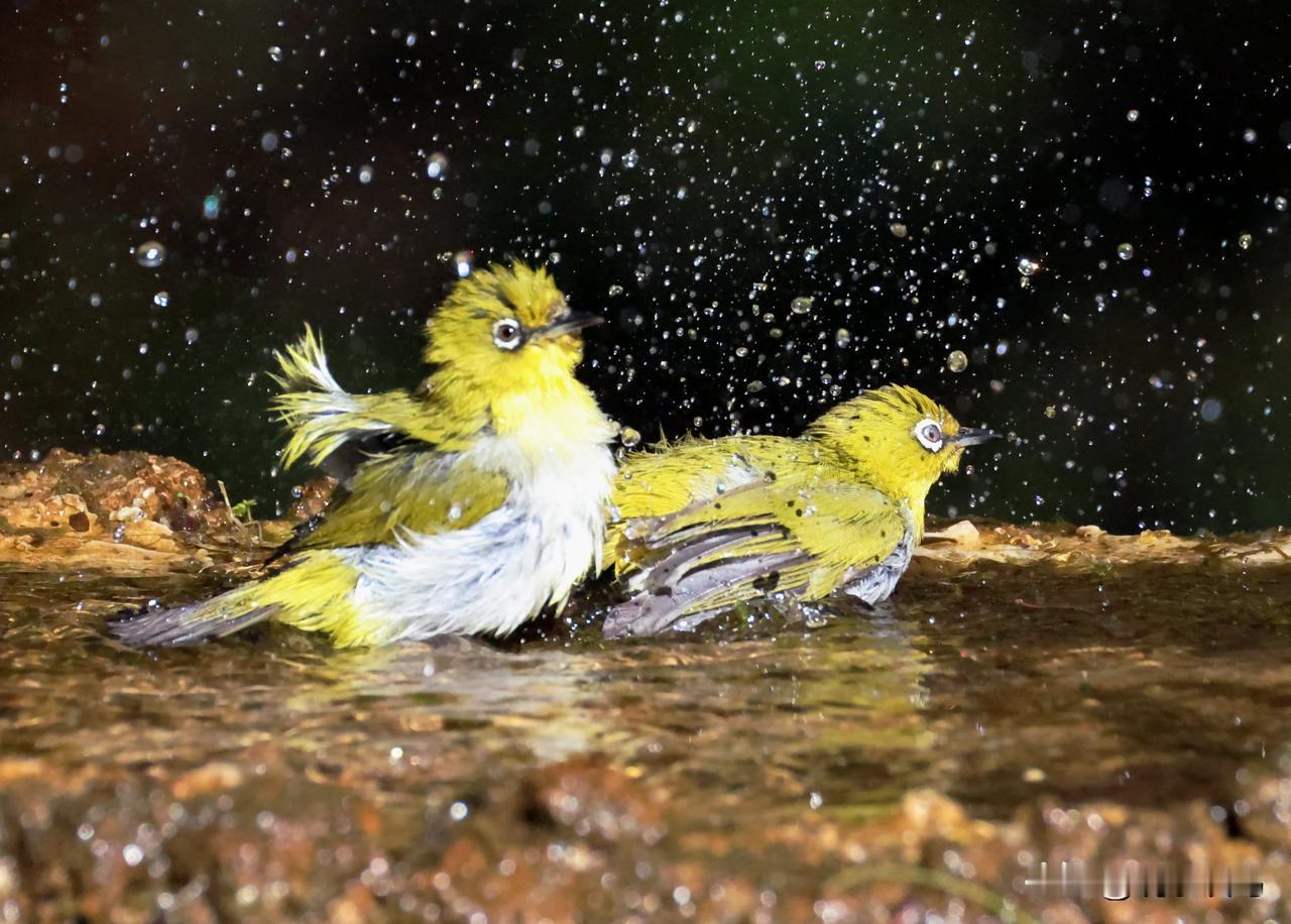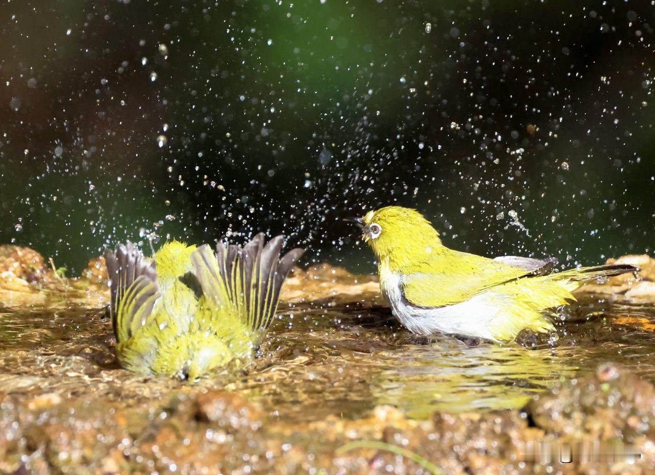 冬日绣眼鸟这样醉浴!! 最近抓拍到了一组灰腹绣眼鸟冬阳下沐浴的镜头。很有趣的!