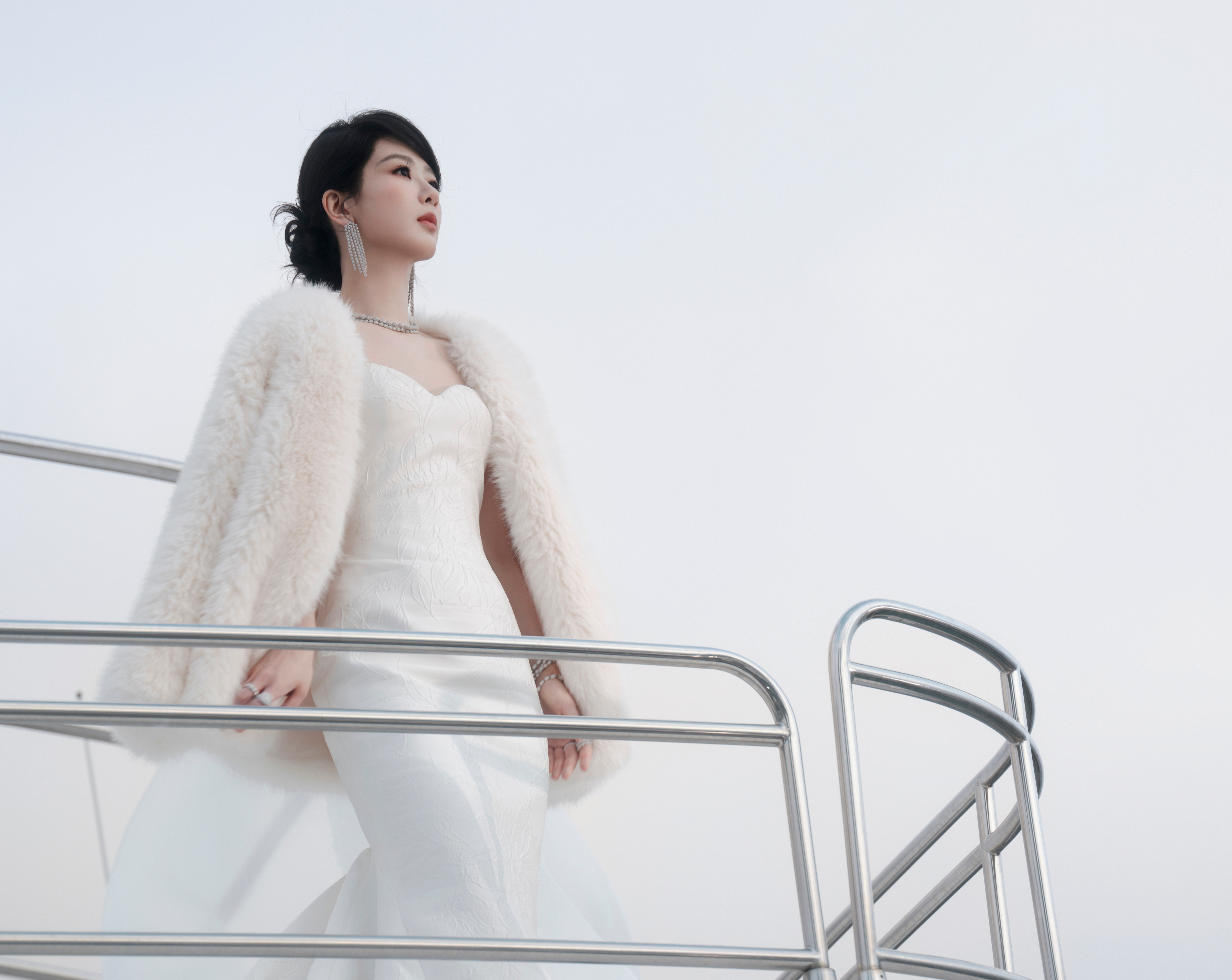 杨紫 今日直播造型,一袭白裙搭配毛绒披肩,清冷又矜贵的豪门大小姐既视感拉满,这造型我能循环看一百遍~杨紫