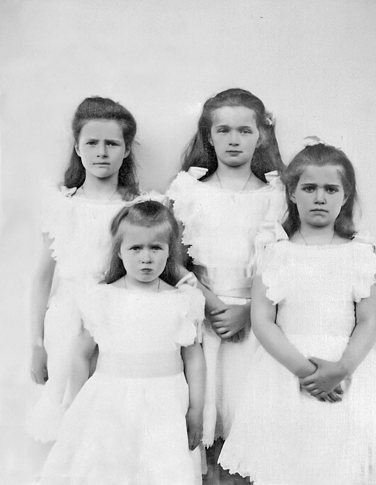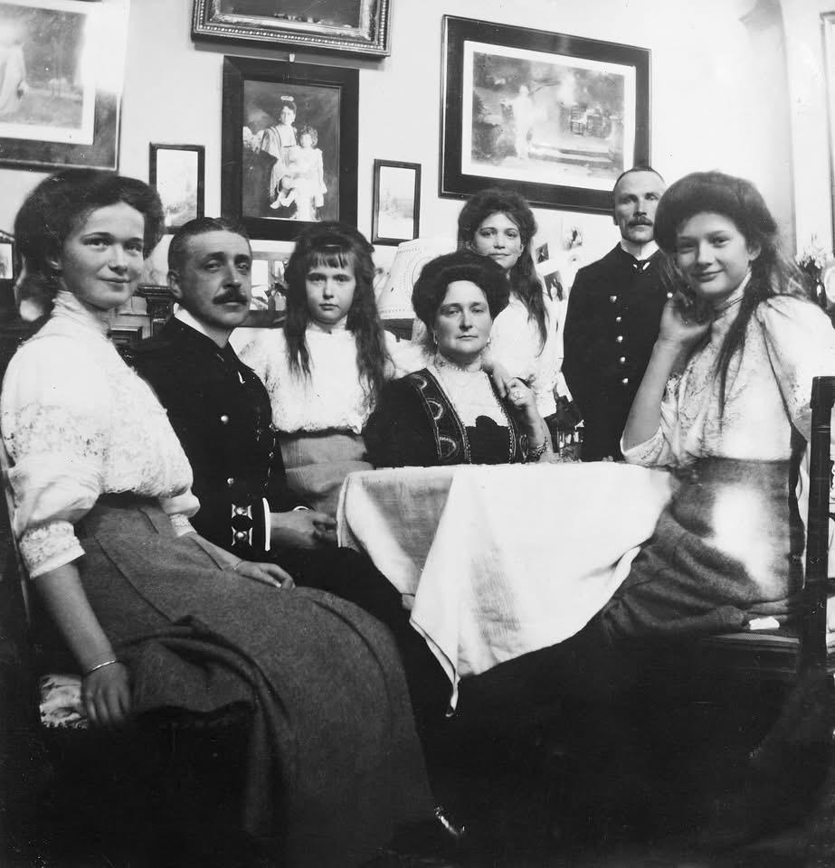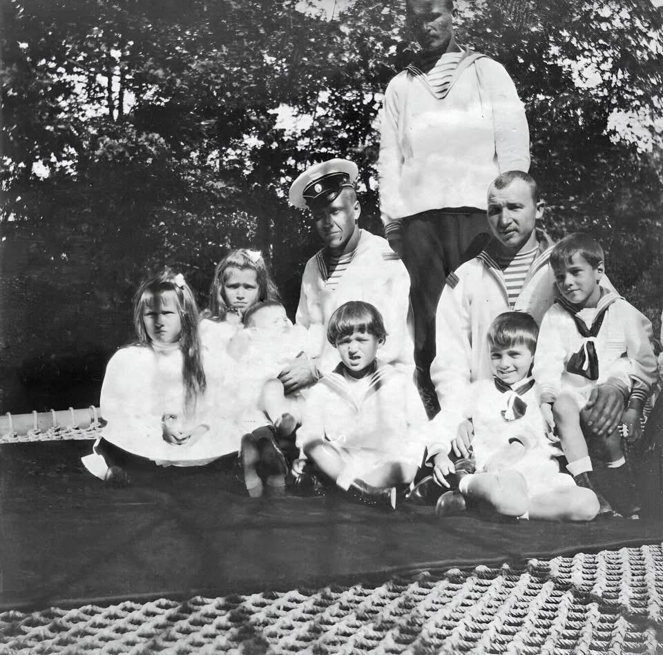 沙皇尼古拉二世一家真实历史留影! 作为末代沙皇的尼古拉二世全家于1918年7月16日在叶卡捷琳堡被处决,包括沙皇夫妇、4个女儿和1个儿子,以及医生和仆人共计11人。行刑后所有遗体即刻被焚烧并掩埋!遗骸直至1991年才被发现并通过了DNA确认。这也标志着罗曼诺夫王朝的彻底终结。 比起末代沙皇,同为末代皇帝的溥仪就幸运多了,虽被冯赶出了紫禁城,但起码保住了身家性命! 图一:1913年,玛丽亚、奥尔加女大公与沙俄士兵们合影留念。(地点不详) 图二:1911年,阿列克谢·尼古拉耶维奇皇储郊游划船留影。(地点不详) 图三:1903年,幼年的罗曼诺芙大公女爵们:奥尔加、塔季扬娜、玛丽亚和阿纳斯塔西娅合影。(地点不详) 图四:1912年,沙俄雅尔塔,塔季扬娜、奥尔加、玛丽和安娜斯塔西娅4位女大公与她们的姨妈埃莱奥诺尔女大公,以及表亲格奥尔格·多纳图斯和黑森的路易,帝国游艇"Standart"号上。 图五:1908年,俄罗斯末代沙皇尼古拉二世的小女儿安娜斯塔西娅女大公坐正在钢琴前专心练习针线活。(地点不详) 图六:1914年,罗曼诺娃家族的安娜斯塔西娅、奥尔加、塔季扬娜、玛丽四位女大公与沙俄年轻军官们合影。(地点不详) 图七:1908年,女大公安娜斯塔西娅、玛丽与皇储阿列克谢以及瓦西里、罗斯季斯拉夫、德米特里3位亲王在彼得宫一同玩耍。 图八:1905年,罗曼诺娃家族的塔季扬娜、安娜斯塔西娅、奥尔加、玛丽4位女大公合影。(地点不详) 图九:1911年,罗曼诺娃家族的女大公奥尔加、安娜斯塔西娅及巴登堡的爱丽丝公主、路易斯亲王合影。(地点不详) 图十:1911年,女大公玛丽、奥尔加、安娜斯塔西娅和塔季扬娜在帝国游艇"Standart"号上游玩合影。(地点不详) 图十一:1911年,末代沙皇皇后亚历山德拉与其女儿们:女大公奥尔加、安娜斯塔西娅、玛丽、塔季扬娜合影。(地点不详) 图十二:1914年,克里米亚奥兰达,两位女大公:安娜斯塔西娅、玛丽一起玩耍后合影。 图十三:1907年,沙俄皇太后玛丽亚与其孙女女大公奥尔加合影。(地点不详) 图十四:1913年,沙皇尼古拉二世与皇后亚历山德拉出席罗曼诺娃王朝388年庆典仪式。他们的女儿塔季扬娜、玛丽女大公,及儿子阿列克谢皇储紧随其后。(地点不详) 图十五:1909年,幼年沙俄皇储阿列克谢与女大公安娜斯塔西娅手牵手合影。老照片 沙皇俄国 俄罗斯沙皇 欢迎大家关注本人微信视频号:“历史影像持续更新”! 结语:欢迎朋友们关注、点赞,评论区发表宝贵观点与建议,并将来自己感兴趣的历史事件留言下来。我将尽力搜集资料,整理成篇,与您共勉! 您的慷慨支持是我持续创作更新的永续动力。文中常有时间地点不详或地名无法译出之状况,若您有案可查,请帮忙斧正补充!