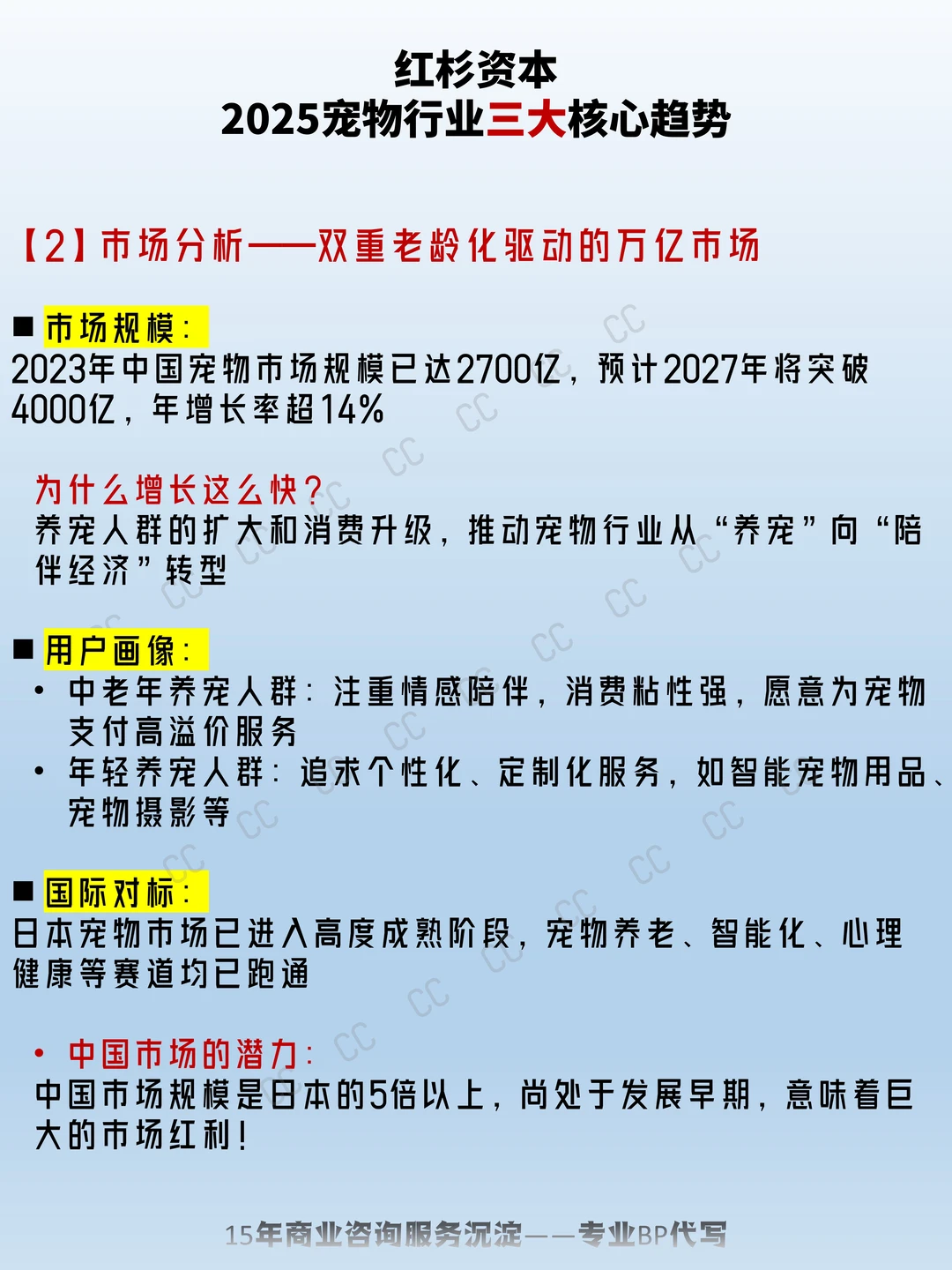 【1】趋势洞察——宠物行业的三大核心趋势 趋势1:宠物主人老龄化 趋势2:宠物本身老龄化 趋势3:人宠共生生活方式兴起 【2】市场分析——双重老龄化驱动的万亿市场 【3】商业机会——五大细分赛道与创业启发 【4】行动建议——如何抓住宠物行业的下一个风口 创业 商业模式 宠物趋势 宠物创业 宠物赛道 宠物市场 宠物行业趋势
