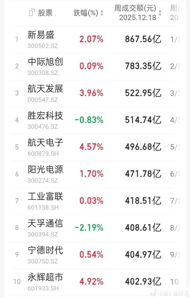【本周A股(12.15-12.19)个股成交总额、涨跌幅区间观察】“上证”涨0.03%,“深证成指”跌0.89%,“创业板指”跌2.26%周总成交额前十、涨幅前十、跌幅前十↓