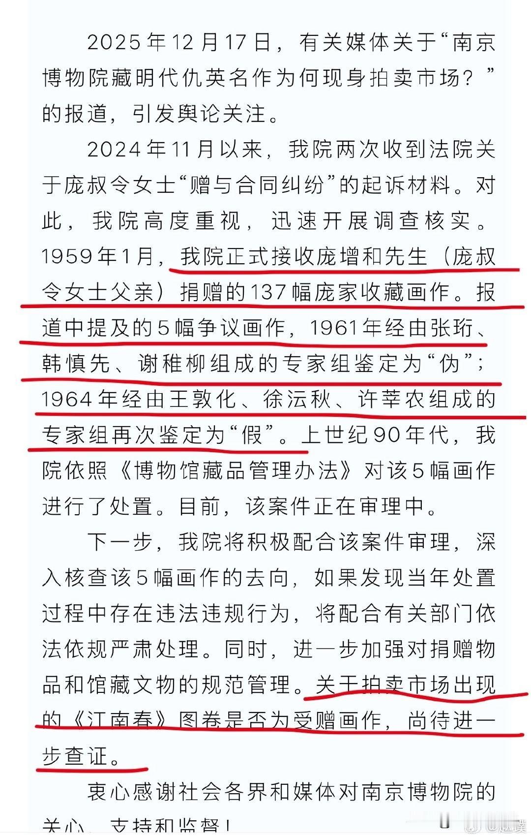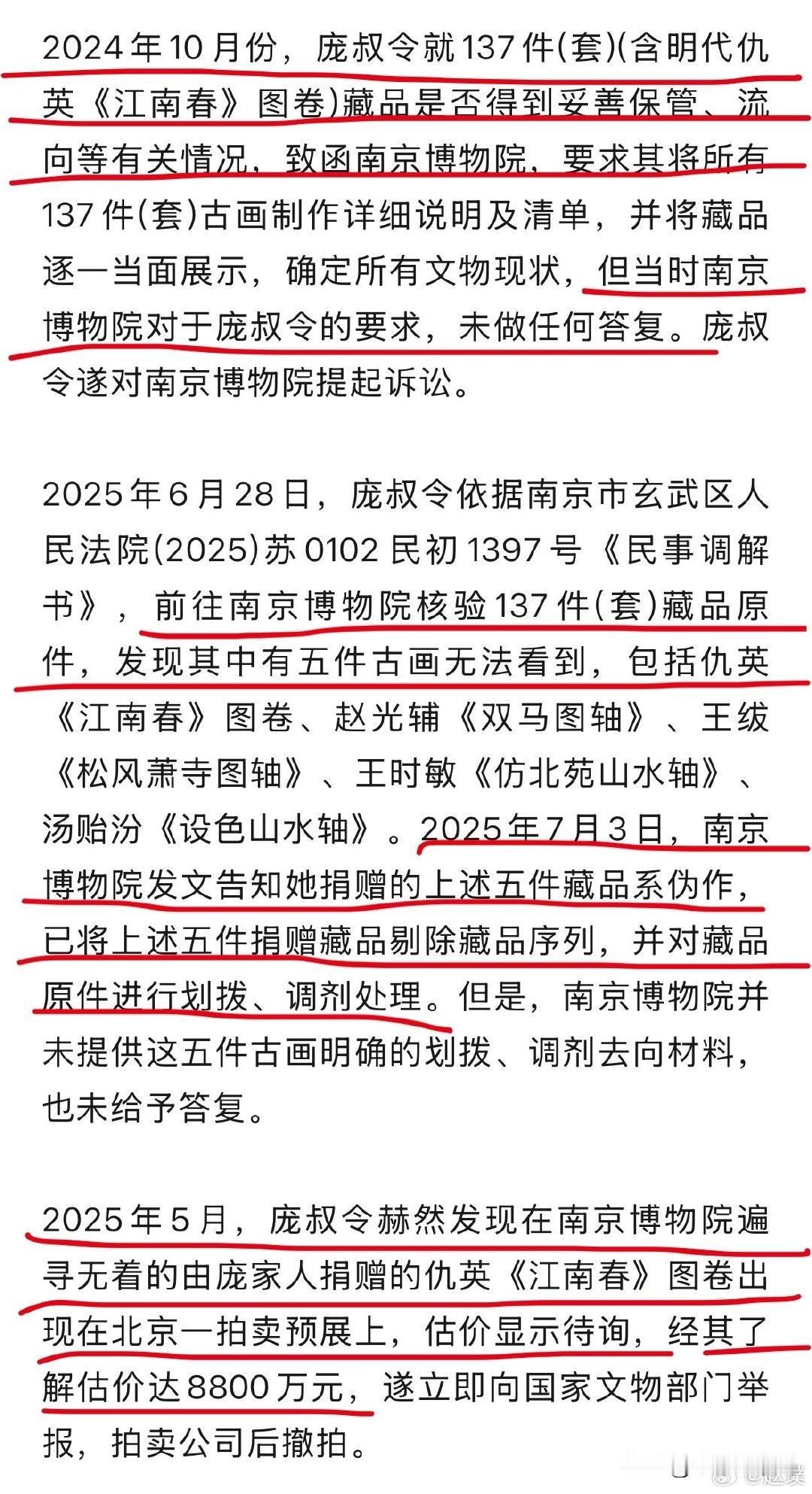南博这事会被曝光,还是因为南博内部工作人员都看不下去了! 2010年,南博某研究员“大放厥词”,说庞家落魄了,要靠卖画才能维持生计,还放出了证据,说《江南春》这幅画早在2000年就卖给了陆挺。 庞家后人气不过,才开始自证清白,最终揭开了南博批在自己身上的这块遮羞布。 那时看这位南博研究员是愣头青,现在看内部工作人员怎么会不清楚行业潜规则和乱象呢,他分明是以身入局提醒庞家后人,先生大义啊! 图7-15为仇英的《曲水流觞图》