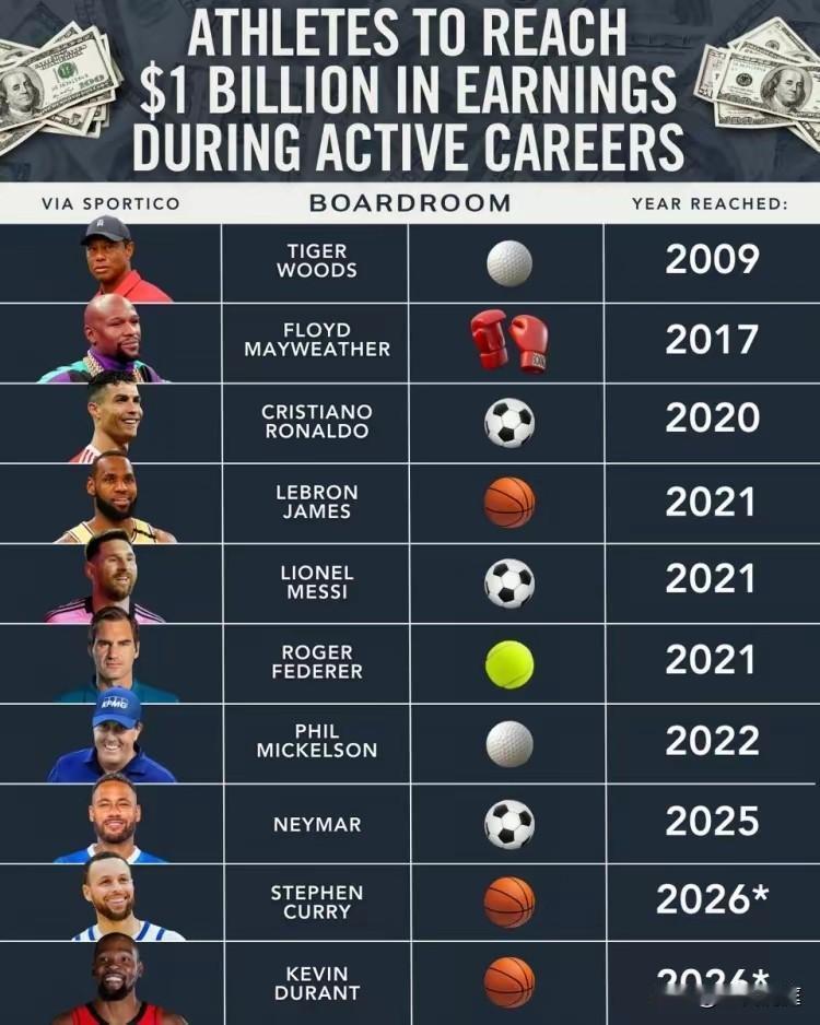 不得了,老虎伍兹在2009年就有超过10亿美元,詹姆斯在2021年达到这个身价,成为篮球界第一人。 据媒体预测库里和杜兰特在明年会突破10亿元,其他运动很少关注,我觉得NBA球员在未来会出现井喷增长,未来亚历山大、东契奇、约基奇等球员都可以,毕竟光年薪就超过7000万美元,还有代言合同等等。