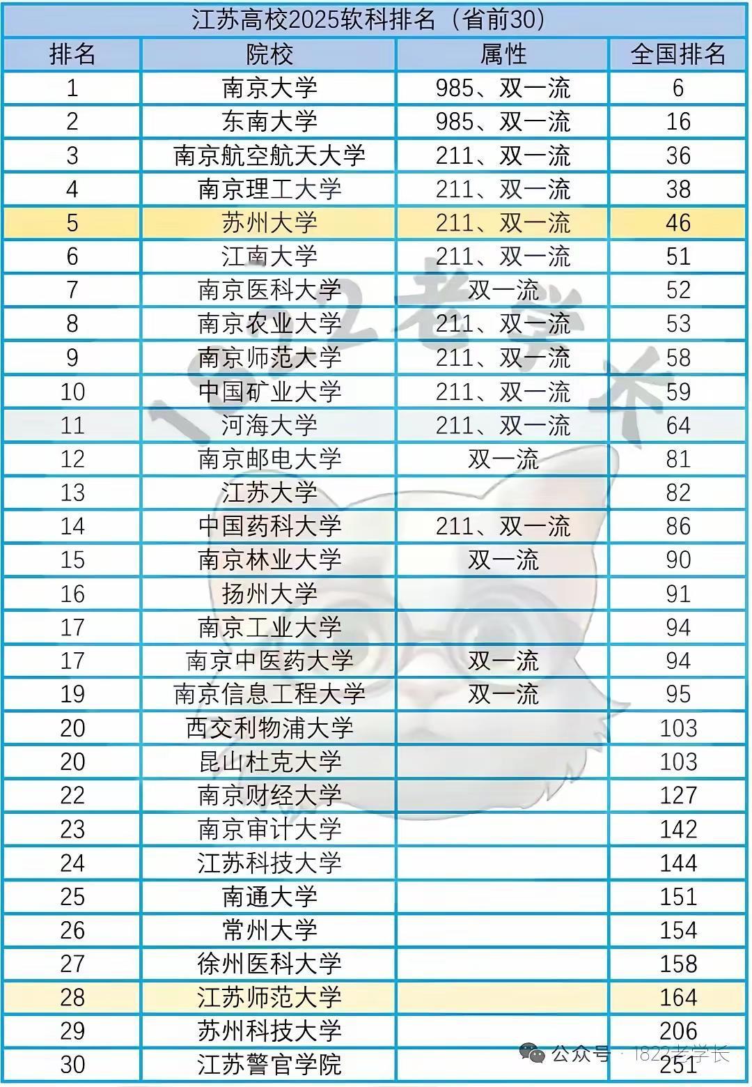 大学 江苏 中国矿大排名第10,相较排名第5的苏州大学、排名第6的江南大学,差距较为明显。由此可见苏南地区高校实力强劲、资源优渥。 近期,软科发布了江苏高校排名,不出所料,榜首是2所985大学。排名前十的大学中,有7所位于南京。三所双非强校里,排名最高的江苏大学位居第13,力压双一流的中国药科大学和南京林业大学。扬州大学、南京工业大学分别位居第16、17,超过了双一流的南京中医药大学及南京信息工程大学。令人意外的是,徐州医科大学的排名居然高于江苏师范大学,看来软科机构有所偏爱。 而未来的淮安大学(淮阴工学院),盐城大学(盐城工学院),连前30名高校都进不来,晋升大学之路任重道远。 城市 南京 苏州 无锡 镇江 苏北