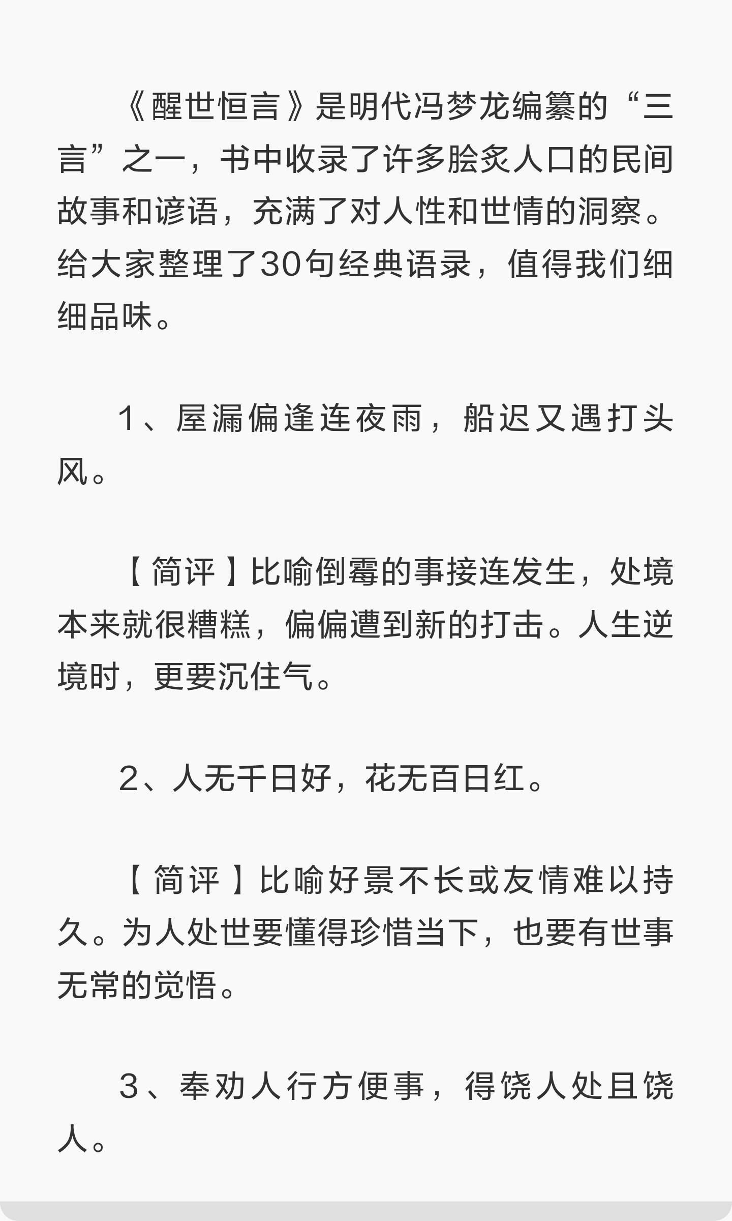 《醒世恒言》30句经典名言,句句道破人性,说尽人生!