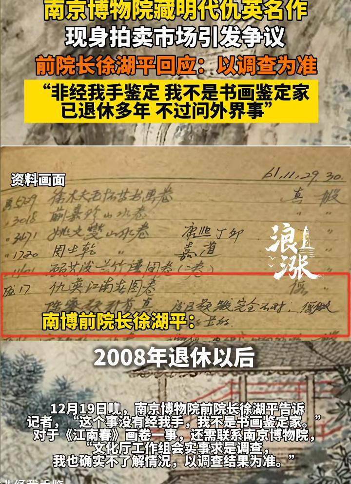 坐不住了!南博原园长回应《江南春》被拍卖,他说我也已经80多岁了,08年退休后,就不再参与任何外界事情的,《江南春》这个事情不是他鉴定的,不是经过他的手,他不知道这个事情。 问题是,《江南春》(哪怕是仿品)被卖是2001年的时候,有他的签名,当时他是园长,出库是他作为院长签字的!竟然说没有经他的手?!他在任啊,这怎么说和他无关呢? 更好笑的是,他说他80多岁了,有高血糖,前列腺也不好,好像是在卖惨,问题是你身体和这个事情有什么关系吗?没退休前你身体应该没问题吧?无外乎卖惨博同情。 希望严查,给外界尤其是人家捐赠者后人一个合理的解释。