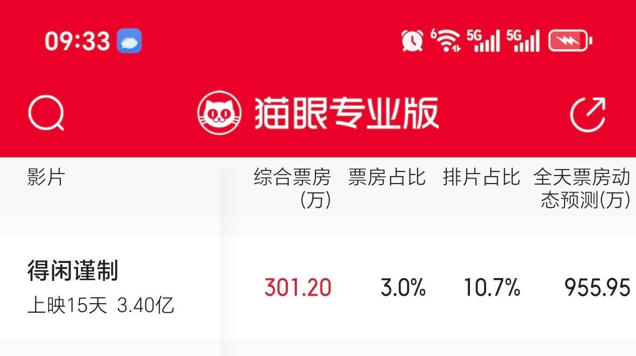 得闲谨制票房预测又涨了!我们的4亿目标在招手 明天票房预测956,咱们明天努力一