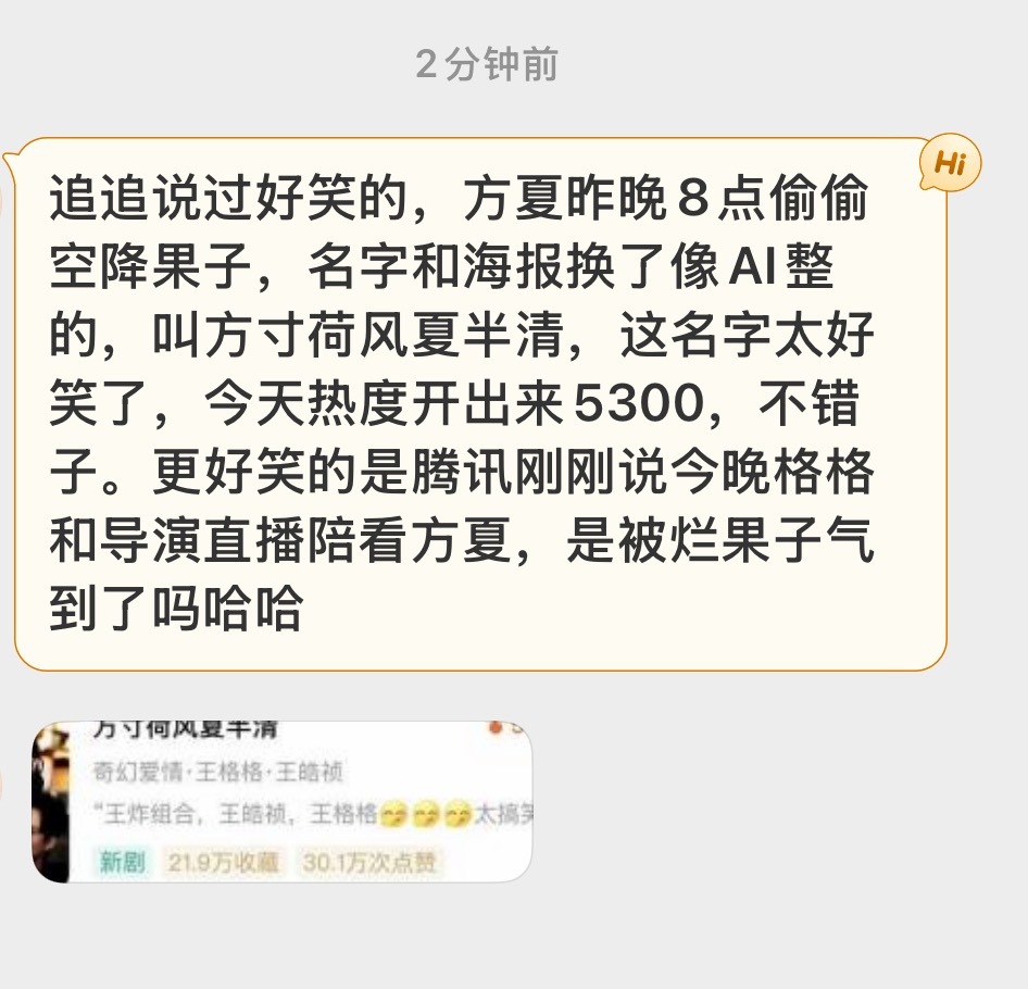 方夏昨晚八点空降都能开出5300 ,什么水平! 不愧在鹅爆了! 腾讯被红果偷家了