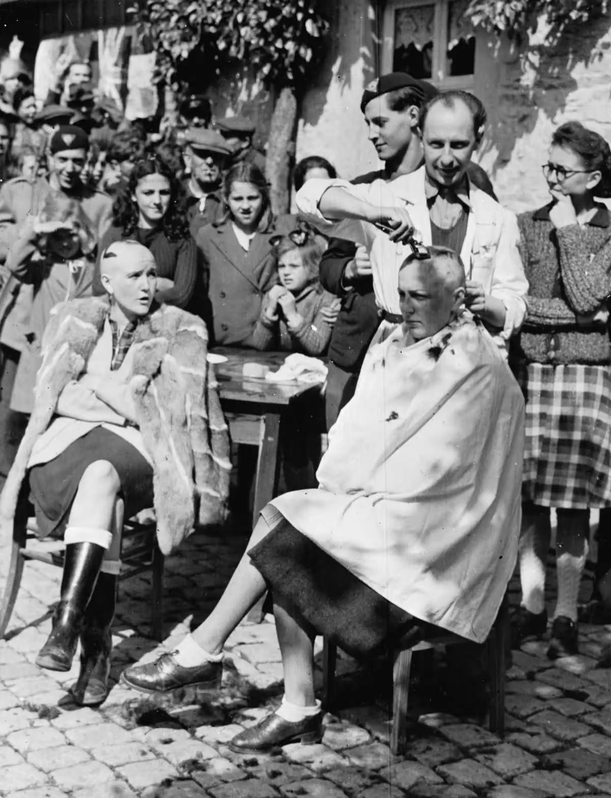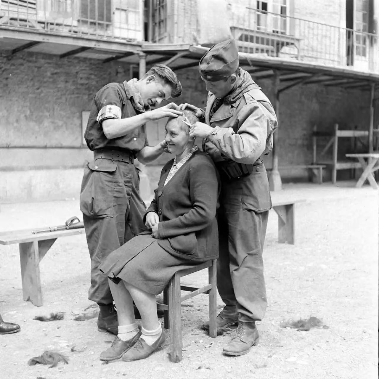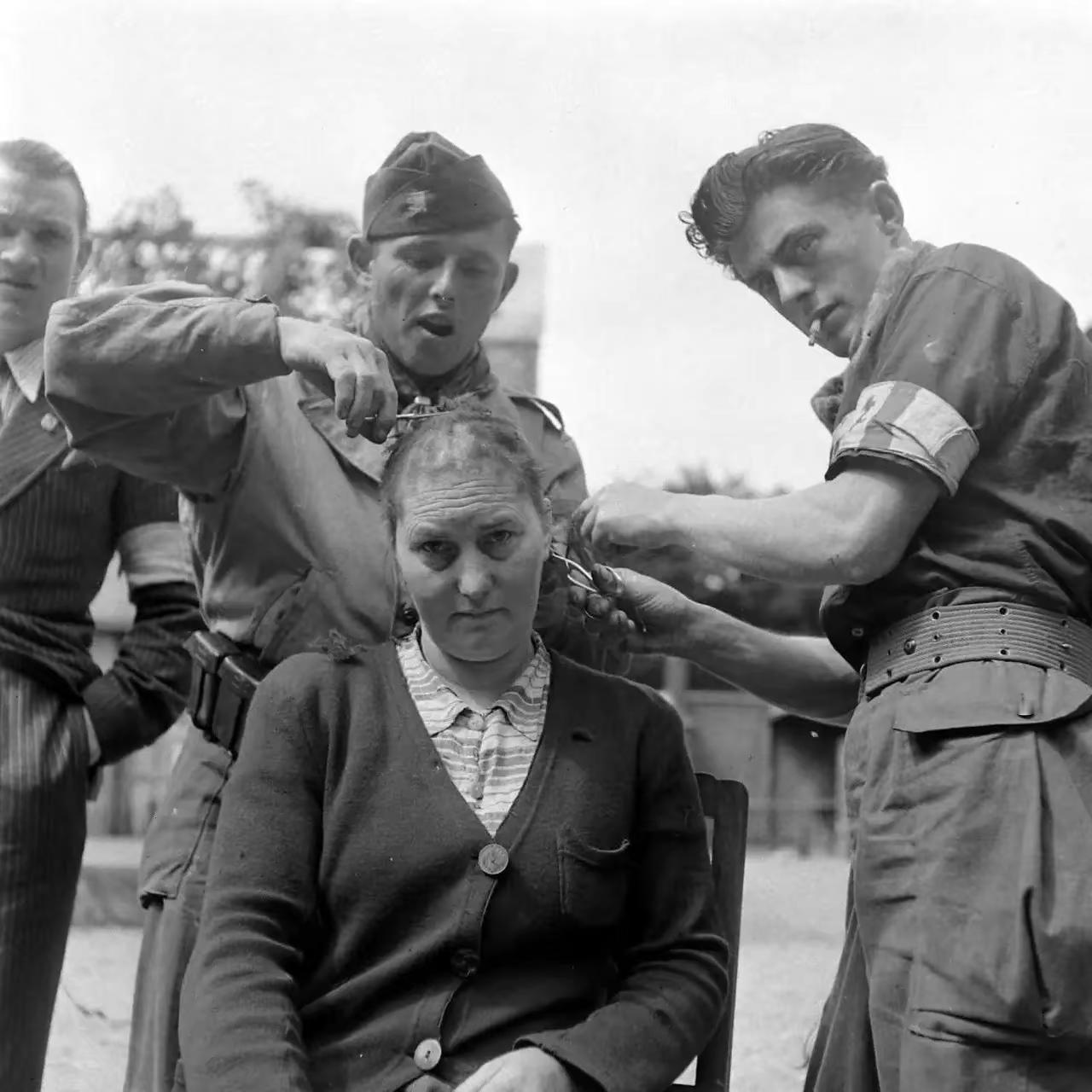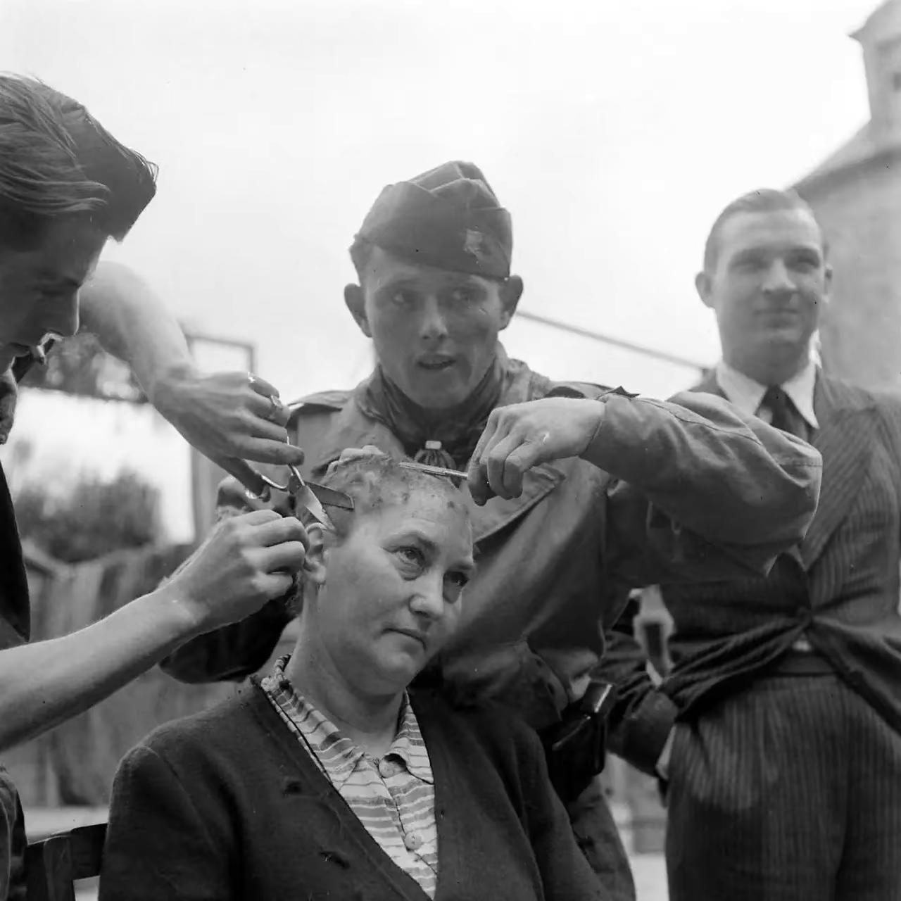 看看二战时期法国男人的“尿性”,战时闪人,火速投降德军或者直接“拍屁股走人”退往英伦岛,留下老人妇孺。战后都冒出来,惩罚本国女性,指控他们与德军通奸。却不知,很多女人仅仅是为了维持整个家庭生计才与德国驻军合作的。要知道战争时期,几乎所有物质都是配给的,不去活动下,集体喝西北风?二战 老照片