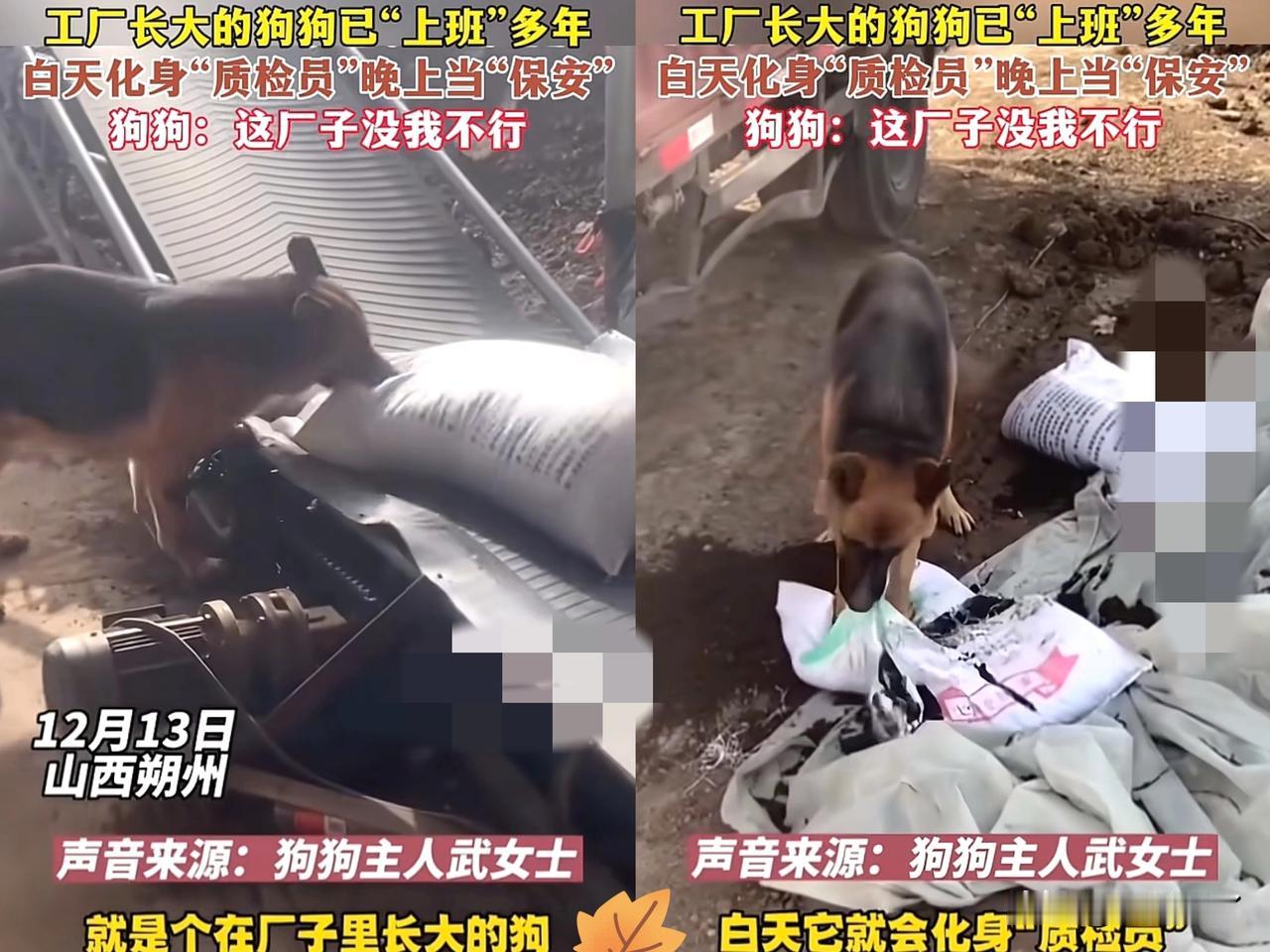 这下科学也解释不清了!近日山西朔州,武女士有一家饲料加工厂,四年前被武女士收养一只狗,谁也没指望它干啥。可这狗子天天蹲在车间看工人忙活! 居然无师自通扛起三份活:白天站运输机前叼饲料帮传送,不合格的还能精准揪出来拖走,妥妥的运输工+质检员双担当;到了晚上,又自觉守在厂区门口当保安,比老员工还尽职尽责! 它哪是来“报恩”的,分明是把身边人的辛苦看在眼里,把守护厂子当成了自己的事! 不给工资只给口饭,却拼尽全力干活,这份纯粹的真诚,真的比很多敷衍的打工人还靠谱! 你怎么看?评论区说说吧!