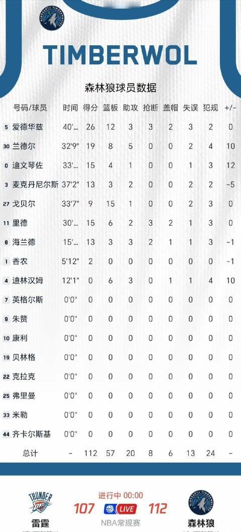 爱德华兹一攻一防杀死比赛!森林狼送给雷霆赛季第三败!三分—盖帽—抢断,一个人包干! 森林狼112-107雷霆,森林狼是真能打硬仗,华子真巨星,关键时刻敢打敢拼!