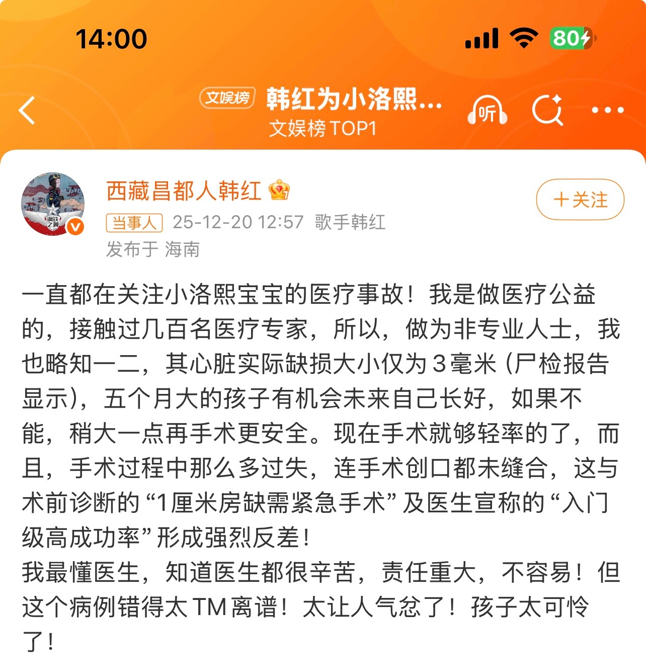 韩红为小洛熙发声了!!韩红为小洛熙宝宝发声