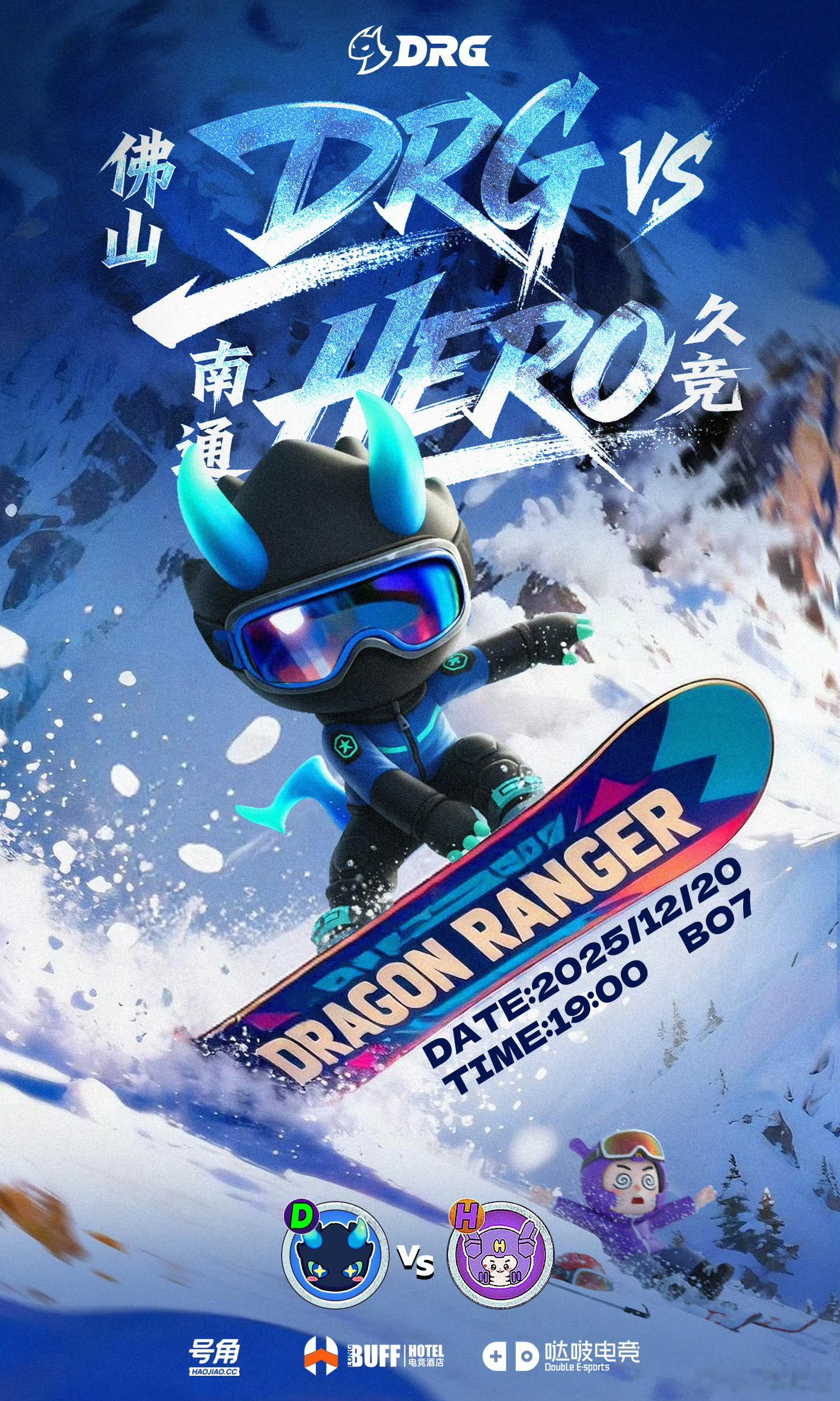 DRG对战Hero|赛前海报·19:00佛山DRG |单板破雪,龙刃出鞘南通Hero 久竞|愿初雪与胜利都如约而至