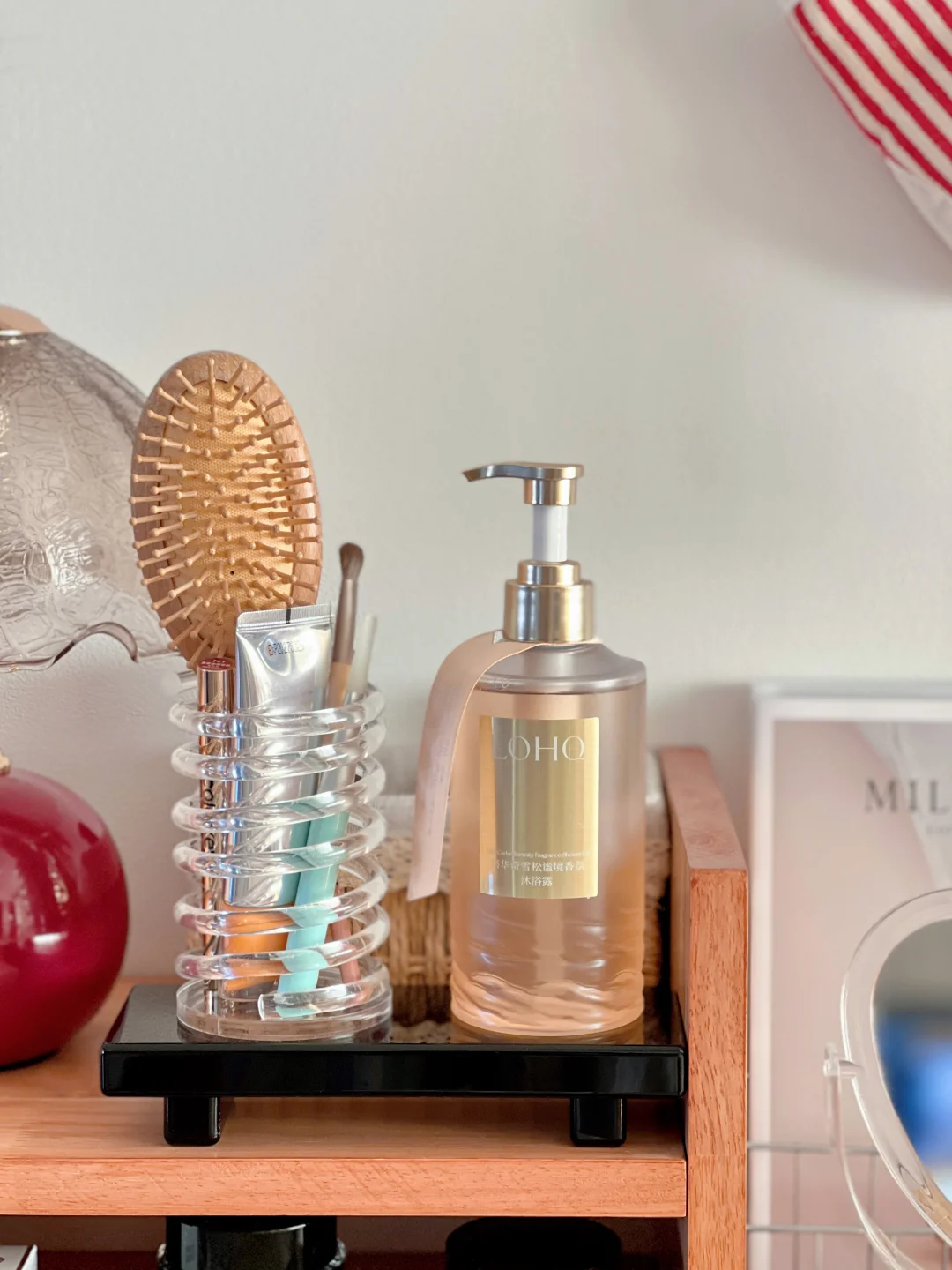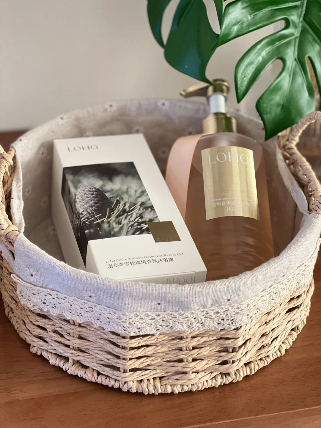 DIY的原木置物架,暖光小台灯 ,藤编收纳筐… 摆上瓶瓶罐罐,温柔又治愈~ 新发现了宝藏沐浴露,悄悄放在了C位✨ 带着清冷的雪松香气,低调又高级! 秋冬天用超温和,洗完润润的🫧 现在每天最期待的就是洗澡时刻 关上门就是专属小森林🌲