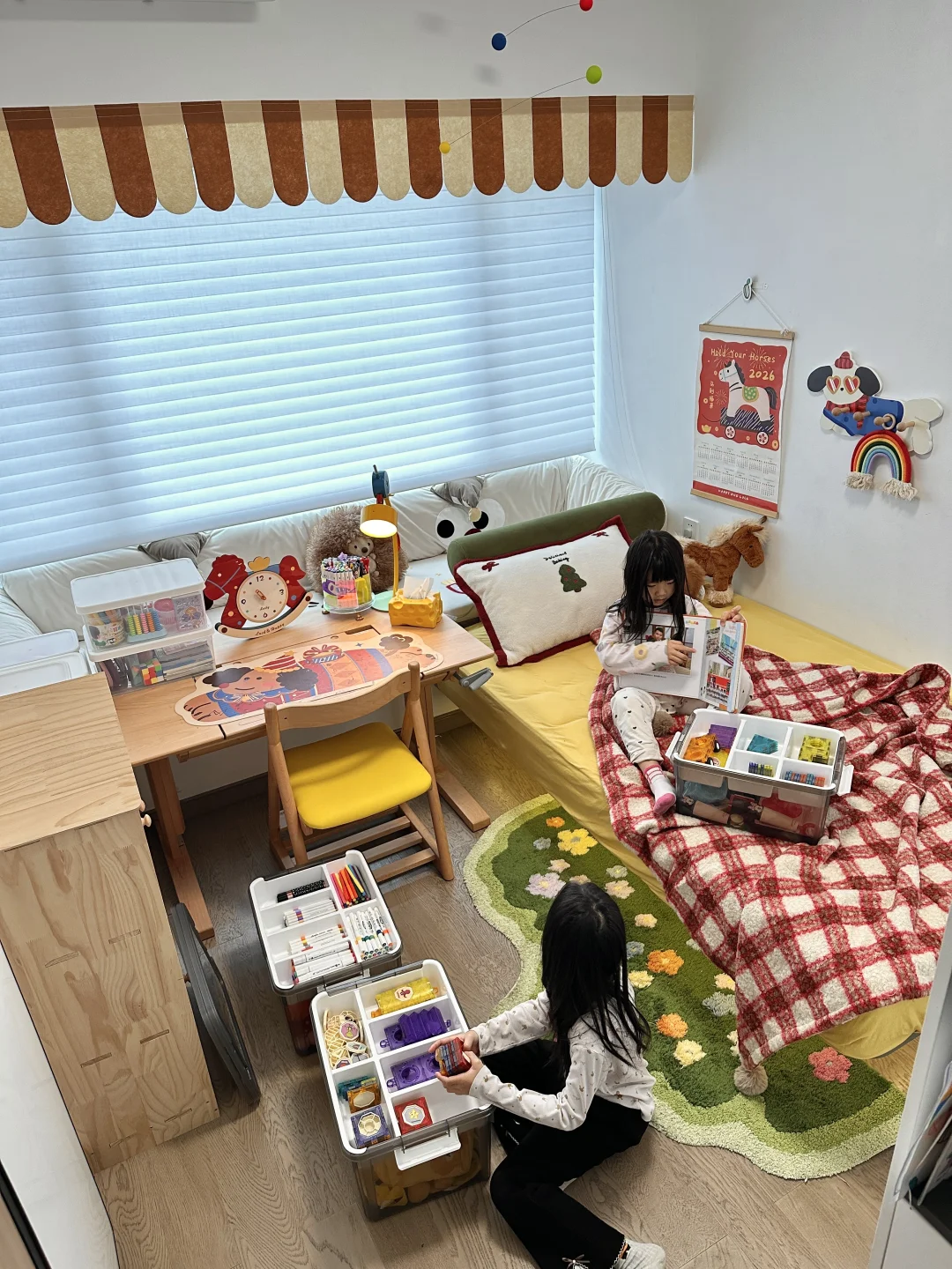 图一:交房时的7平精装卧室 图二:软装搭配后的彩色儿童房🌈 不拆不砸用心布置了一个充满童趣的儿童房 我也想住几天,真的好温馨呀