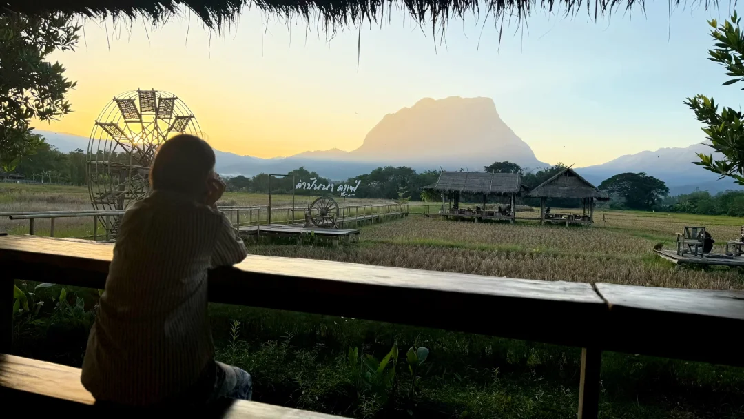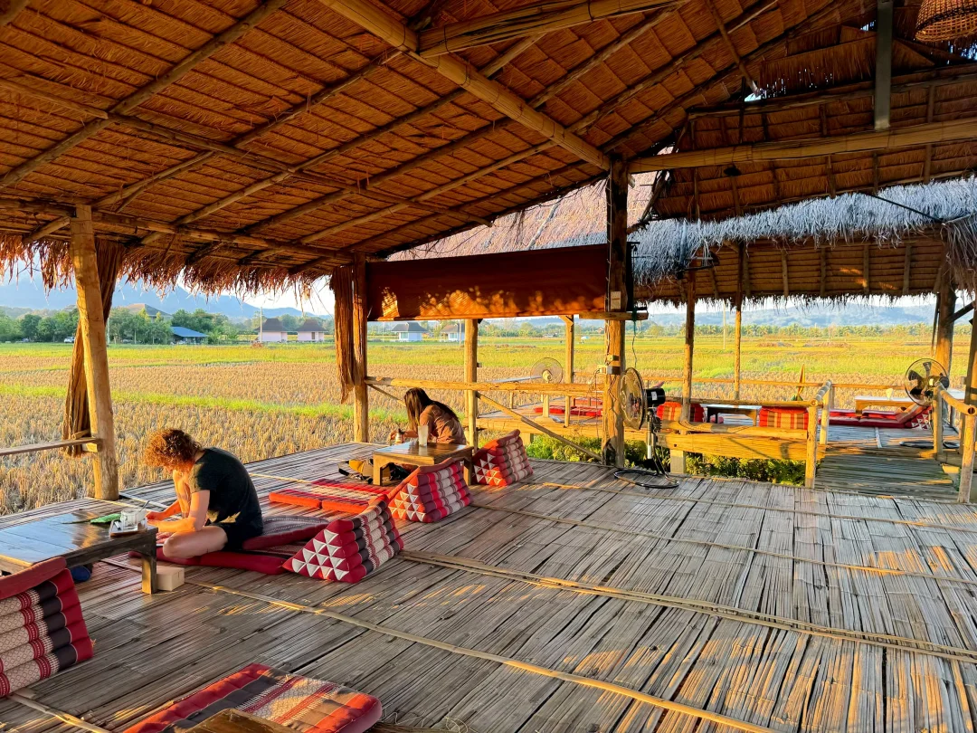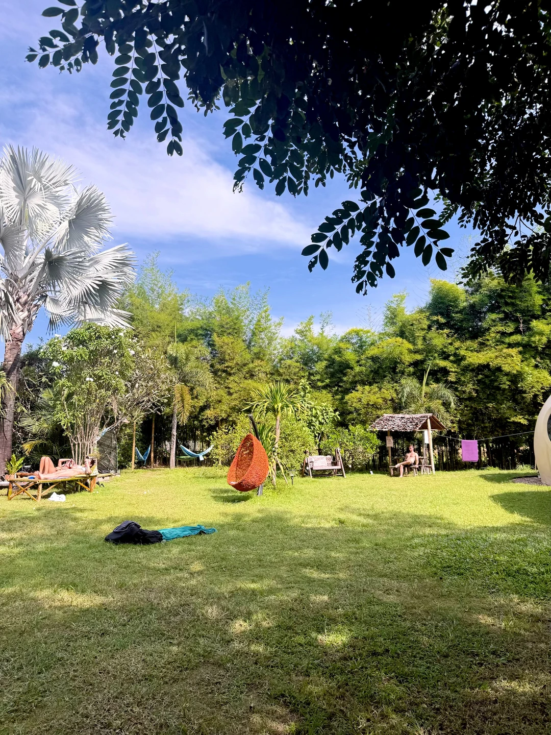 有一个大院子,里面养了很多鸡和鸭,看本人DIY绘画🎨,在这里可以静下来慢慢享受当下,人均💰80🐷,从清迈可以坐本地小火车🚞一日往返南奔