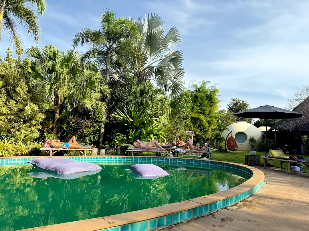 这家需要购买门票🎫:300泰铢,包含 游泳🏊、桑拿、冰桶挑战、+100🐷汗蒸,可以待一天,它家公共空间很大,可以办公,不过很多白人在空地上晒日光浴,去的早会抢到好的位置。