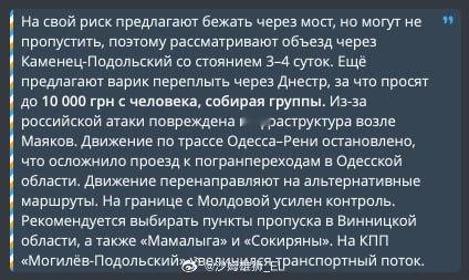 由于桥梁遭到俄军轰炸,乌克兰敖德萨州南部地区面临陆上交通断绝的问题,现在渡河费用