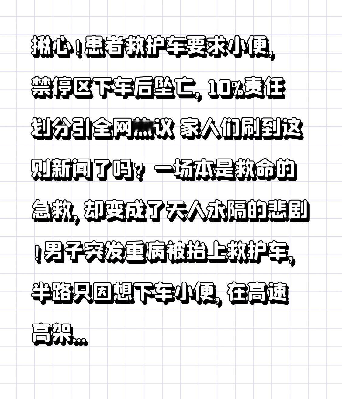 揪心!患者救护车要求小便,禁停区下车后坠亡,10%责任划分引全网热议 家人们