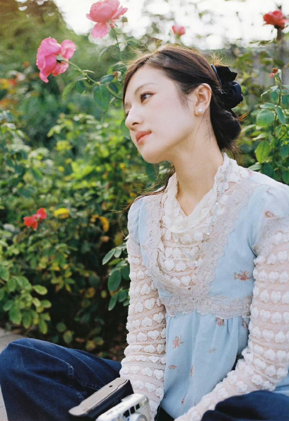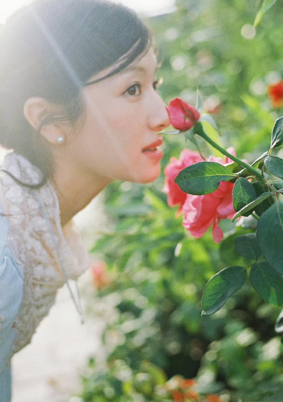 秋日暖阳下,红叶飘飘,少女轻倚树旁,岁月静好。