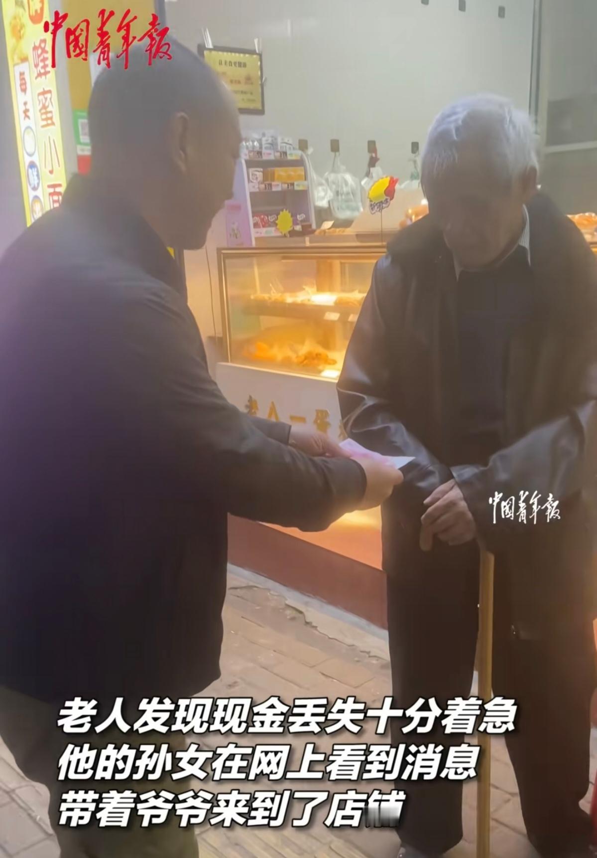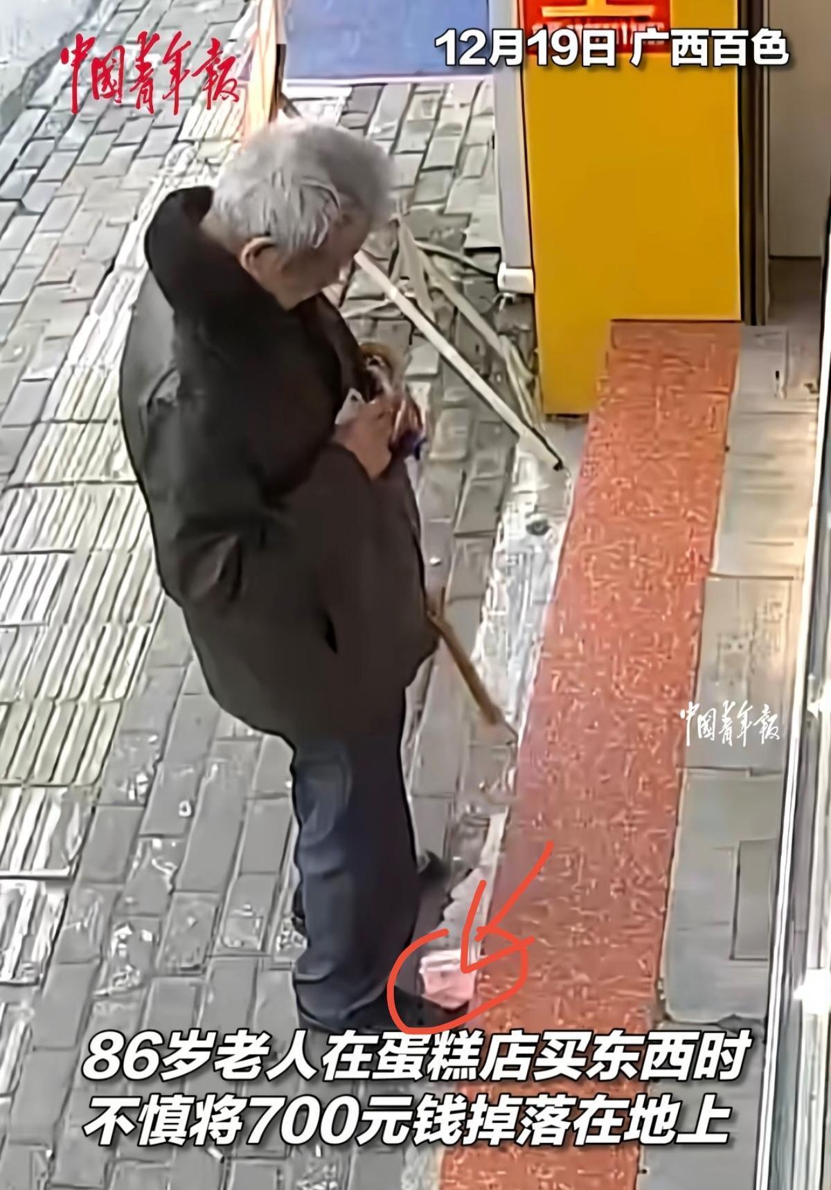 700元不算多!八旬老人生活费,店主拾金不昧暖全城! 八旬老人丢钱牵动人心。86岁的老人佝偻着脊背,拄着拐杖到街边蛋糕店买东西。老人掏出钱包付钱,几张百元大钞跟着滑落,轻飘飘掉在脚边的水泥地上。老人没察觉,付完钱慢慢挪着步子离开。店主整理货架时,眼角余光瞥见地上的钞票。店主弯腰捡起,数了数整整700元。店主第一反应是追出去,门口早已不见老人的身影。 店主转身冲进监控室。店主盯着屏幕,一遍遍回放刚才的监控画面。监控里清晰拍下老人的衣着样貌,还有老人离开的方向。店主没有犹豫,掏出手机拍下监控截图。店主把截图发到本地生活群,附上简单的文字说明。消息在群里快速扩散,认识老人的街坊邻居主动联系店主。 联系上老人的那一刻,店主悬着的心落了地。当天下午,老人在家人的陪同下赶到小店。店主把700元现金递到老人颤抖的手中。老人紧紧攥着钱,嘴唇翕动着说不出完整的话。老人浑浊的眼睛里泛起泪光,一遍又一遍对着店主点头。店主笑着摆手,招呼老人和家人坐下喝口水。 这笔钱对年轻人或许不值一提,对老人却是沉甸甸的依靠。这700元可能是老人一个月的米面油钱,可能是老人买药的备用金,可能是老人舍不得花的养老钱。店主的举动,没有惊天动地的豪言壮语,只有发自内心的善良。这种善良,不是一时兴起的冲动,是刻在骨子里的淳朴与真诚。 善良是会传递的火种。今天店主帮了老人,明天受感动的路人会帮更多人。这份温暖,藏在街头巷尾的小事里,藏在陌生人的善意里。它让我们的日子有了温度,让我们的身边多了阳光。生活里的小美好,从来都不是凭空出现的。它是你我伸手的瞬间,是你我转身的善意。 来源 | 中国青年报
