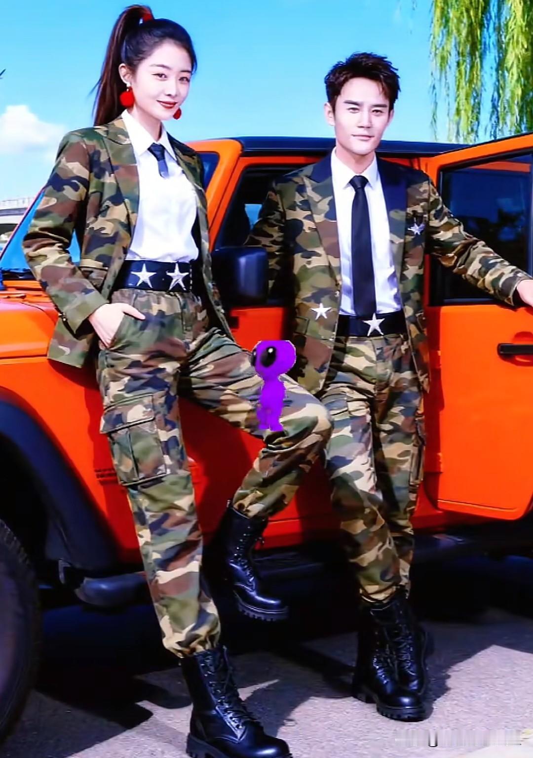 王凯谭松韵迷彩服饰太美太迷人了吧,好可爱呀,好帅气谭松韵穿搭军绿工装裙明星