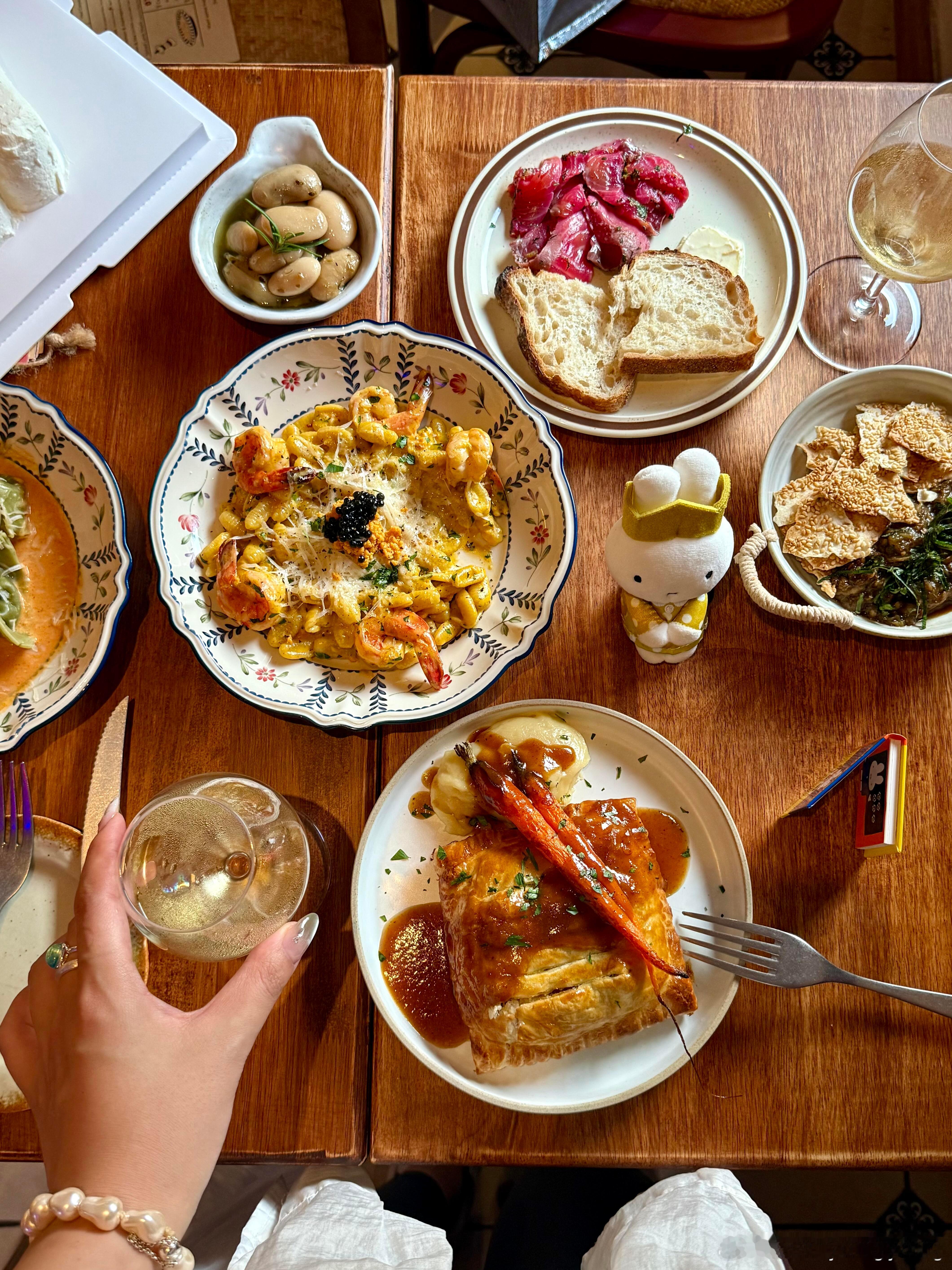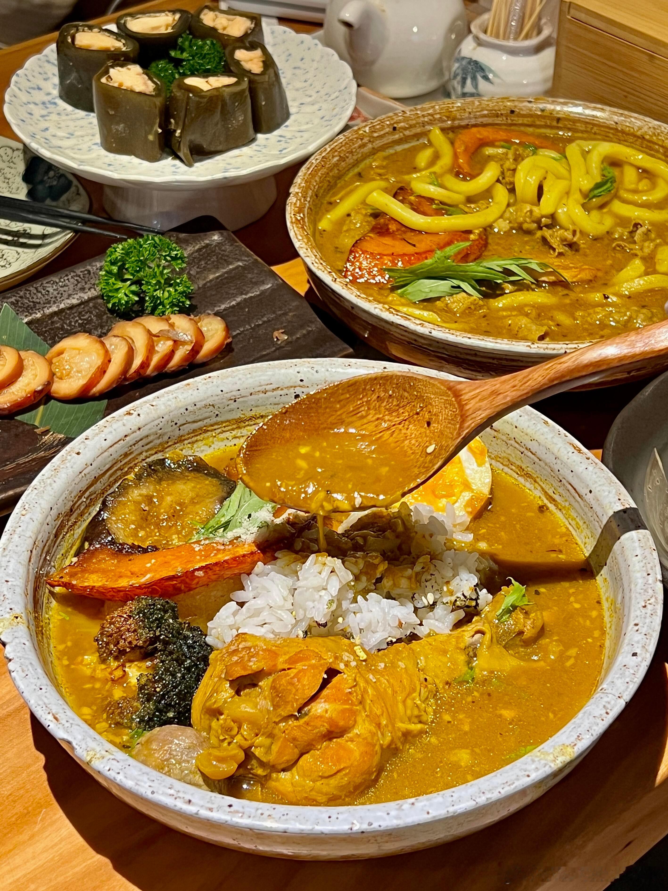 北京的秋天虽然短暂,但真的是一年最美的季节,今天来盘点这一年去过的适合在秋季小聚的氛围小馆,带着朋友闺蜜享受惬意的氛围,非常适合畅聊,通过分享给大家希望这几家喜欢的小馆,也都是漂亮饭,给你们一些吃饭新灵感🍽️1️⃣汤厨:隐藏在五道营的胡同里,很美的一家餐厅。位置好找,鱼做的挺嫩,小黄黄牛肉Q也炒的火候刚好,上菜速度挺快,餐具也很有独特漂亮。2️⃣洋食屋:朝阳公园附近的一番街,菜品味道很好,材料新鲜,都是下酒的小菜,推荐luna 汉堡,小鸡腿,非常不错。3️⃣久喜町北海道汤咖喱:板桥胡同拐弯进石雀胡同,很隐蔽,但紧挨着北新桥地铁站°C口,店面不大,但是很温馨之汤咖喱,里边有炸过的土豆条豆干条南瓜片西兰花茄子块玉米条秋葵溏心蛋,另外还有个超大的鸡腿柚子味牛舌 就是柚子醋拌牛舌,都值得一试。4️⃣喜山馄饨:绝对是值得专程跑一趟的宝藏小店。老板一个人包办所有,只在二四六下午营业,想吃可得掐好时间。他们家的山鲜馄饨和荠菜馄饨是招牌,馅料新鲜扎实,味道非常惊艳。5️⃣Jamaicablue Coffeeshop:新城国际的这家jamaicablue,一人食或是谈事情都很合适,天气好的时候坐在室外非常舒服,夏天秋天都很美。菜品和饮品盲点不出错。在附近工作中午出来吃个午餐很幸福。6️⃣ 来坐坐:店面不大,小而美。一切的菜品都很好吃。牛肉饭~的萝卜都有肉味,满满一大碗。创新的打卤面小料种类非常多,口感特别丰富,炸鸡蛋丁还有醋香!腊肠的云贵风味很足,我作为一个不爱吃云南菜的人,这个口我都爱上了。7️⃣DuLi度粒:不排队,很bistro的感觉,适合约会聚餐。推荐新疆香料菌菇烤串,真的是新疆的味道 菌菇做的实在是太象肉了,越薄越像。麻婆豆腐鹰嘴豆泥,很饱腹。8️⃣Tangled:北新桥胡同里的一家意式bistro,镭射反光投影方块灯还挺带动气氛的,到晚餐时间一开灯,氛围一下子从小情小调变得活泼了起来。9️⃣司机与巴士:很可爱的一家小店,就在小区里面,可提前预定,巧克力口味的面包很好吃,内馅给得超足,均匀渗透在面包纤维里,不是齁甜的工业味,而是醇厚丝滑的质感。搭红茶做下午茶,治愈所有疲惫时刻。我的年度美味清单温暖的食光