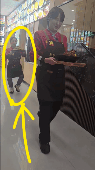 罗圈腿, 还是腿有毛病? 阿姨看起来岁数不小了, 一定是为了生计 在饭店当服务员! 这个岁数, 如果不是为了赚钱养家, 肯定不会来干这个!