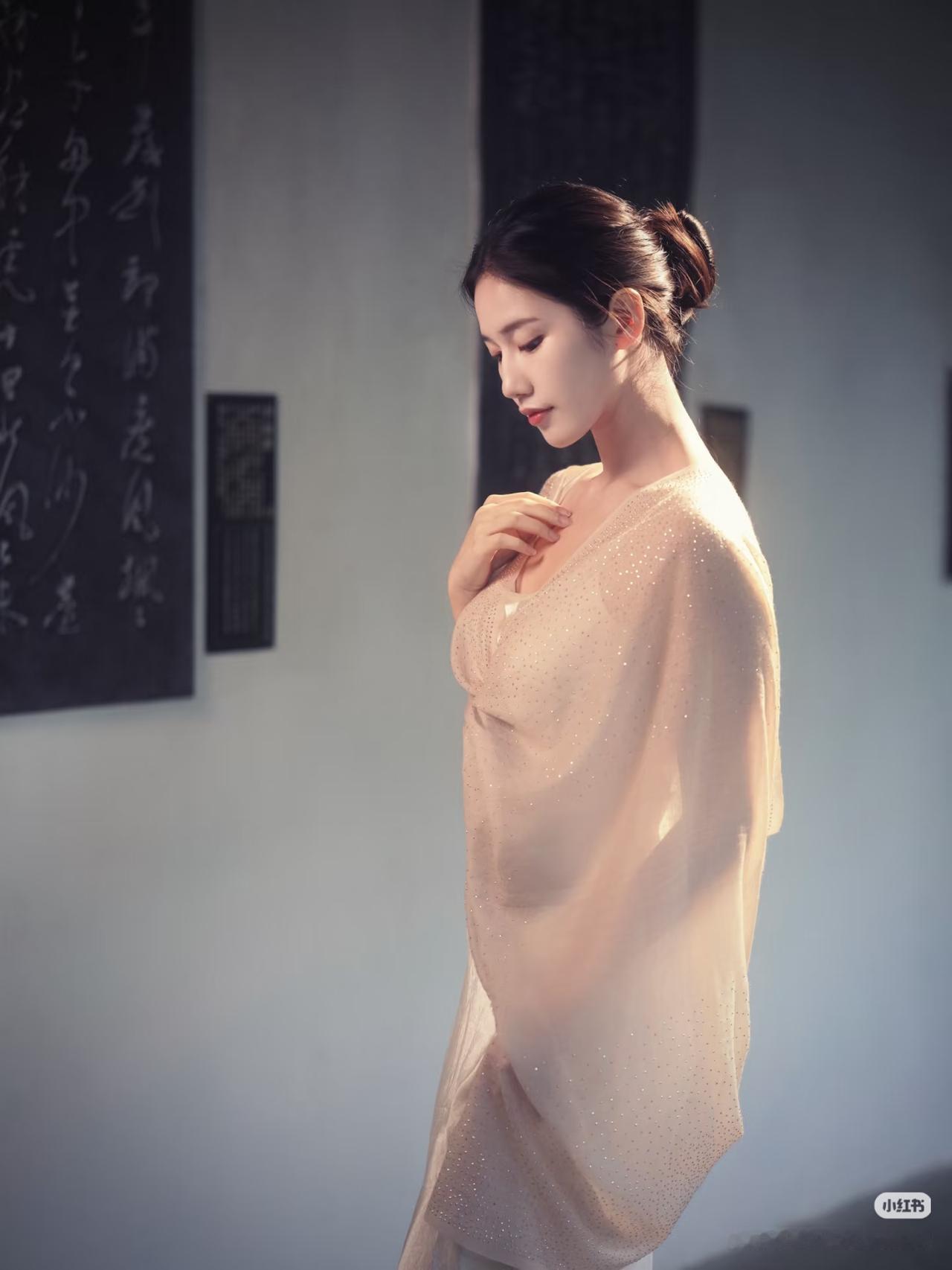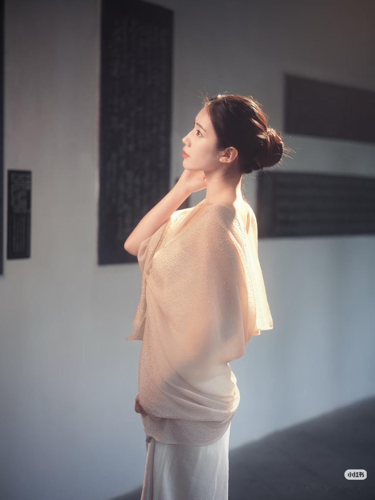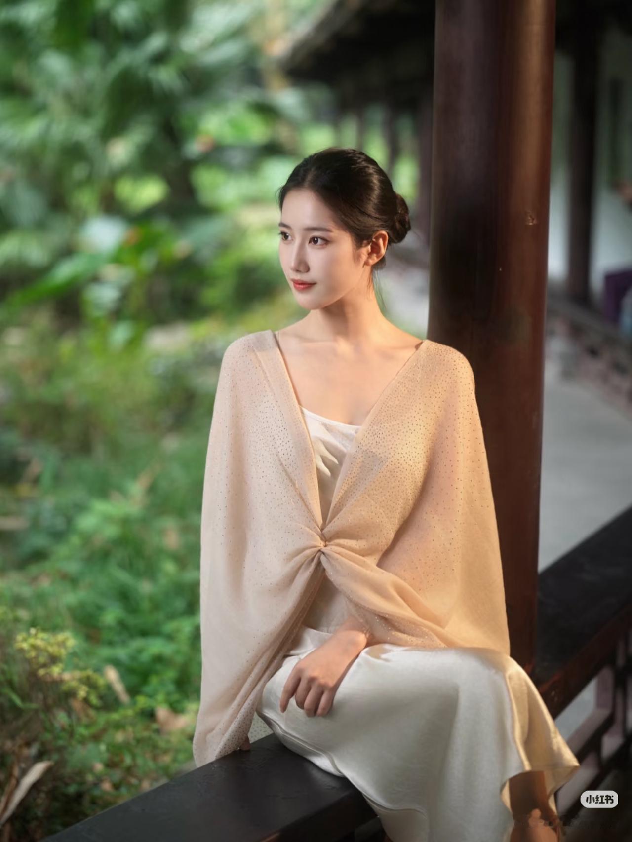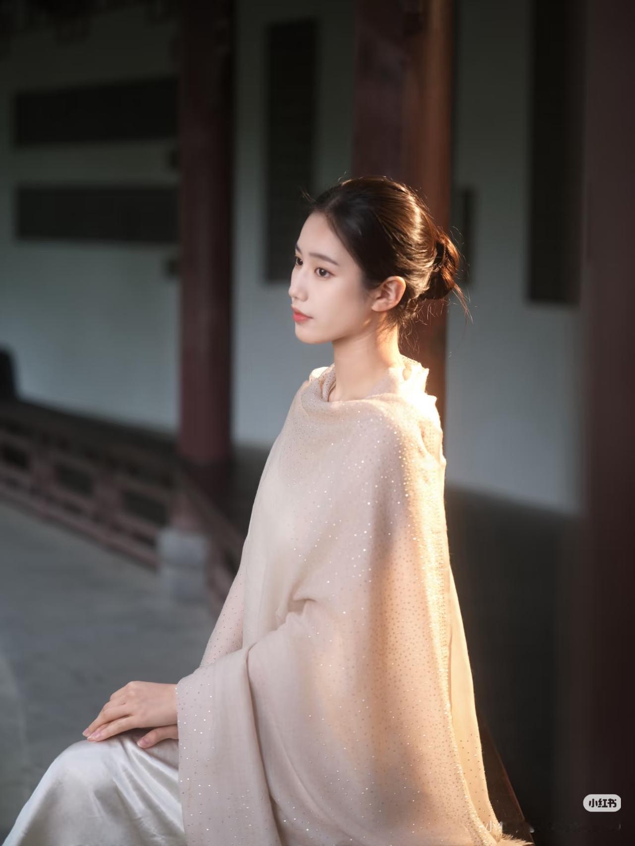 古风少女,静坐亭中,轻纱飘逸,如梦如幻。