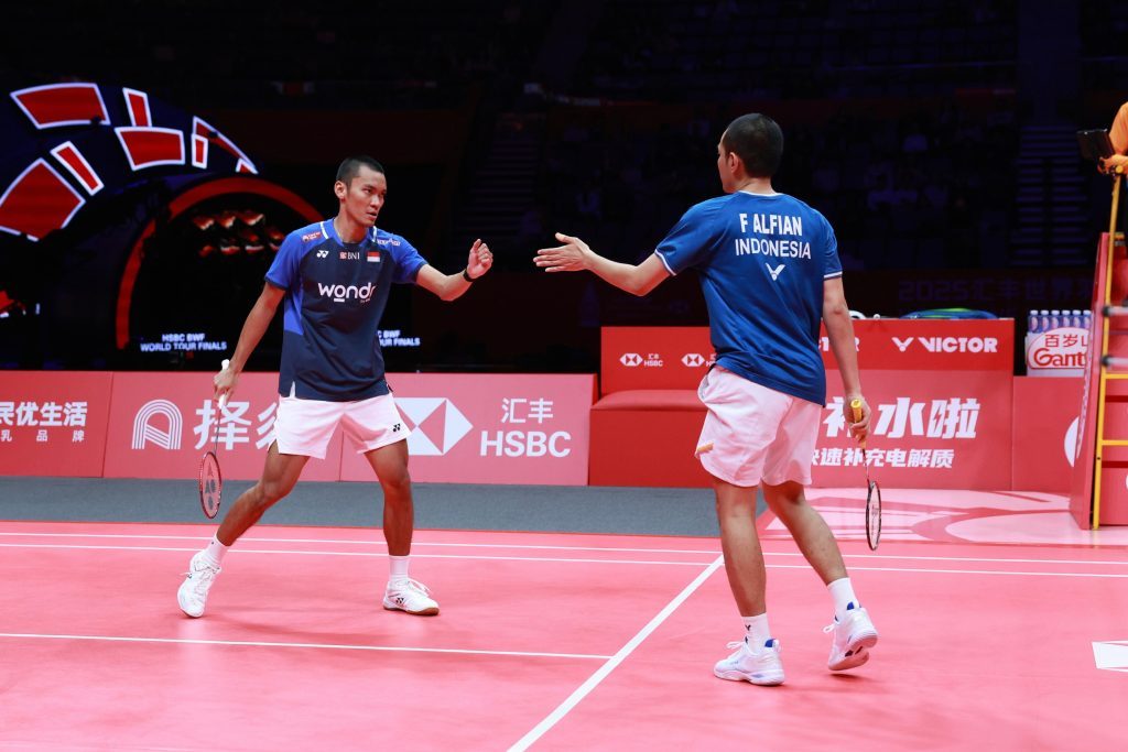 双菲组合 总决赛第三比赛日菲克里:他们是非常出色的组合,打法很坚韧也很聪明。刚才第一局我们确实一度领先,只是在最后阶段专注力下降了,很快就丢了局分,局势逆转,他们就打得更开了,也更有信心了。从那里开始,就成了他们反击的起点。当然,新的一年,2026年我们也希望有新的成就。从这里回去后,为了备战最近的比赛——马来西亚公开赛,我们还有很多准备工作要从现在开始做起。我们肯定希望表现得更好,不想像这次一样。我们当然想争夺冠军。希望明年能成功。阿尔菲安:要评估的方面,我们肯定需要提升耐力,需要提高速度、爆发力这些方面。因为我觉得,这次世界羽联总决赛的每一对组合都很强,所以确实需要集中注意力,所有方面都需要我们再加强。今年是不可思议的一年。我没想到能和菲克里搭档。也要感谢菲克里在今年(虽然只有5-6个月)的奋斗。我们原来的目标本来是年底进入前20名,但我们最终打进了前10名。我认为这真是出乎意料。也要感谢rian在我11年职业生涯中付出的努力。以及在今年1月到8月期间的贡献。希望未来我们都能继续取得成就。我,菲克里,还有rian,无论身在何处。希望2026年,明年能更好,取得更多成就,更专注。并且能不断追赶那些差距。 ©️PBSI