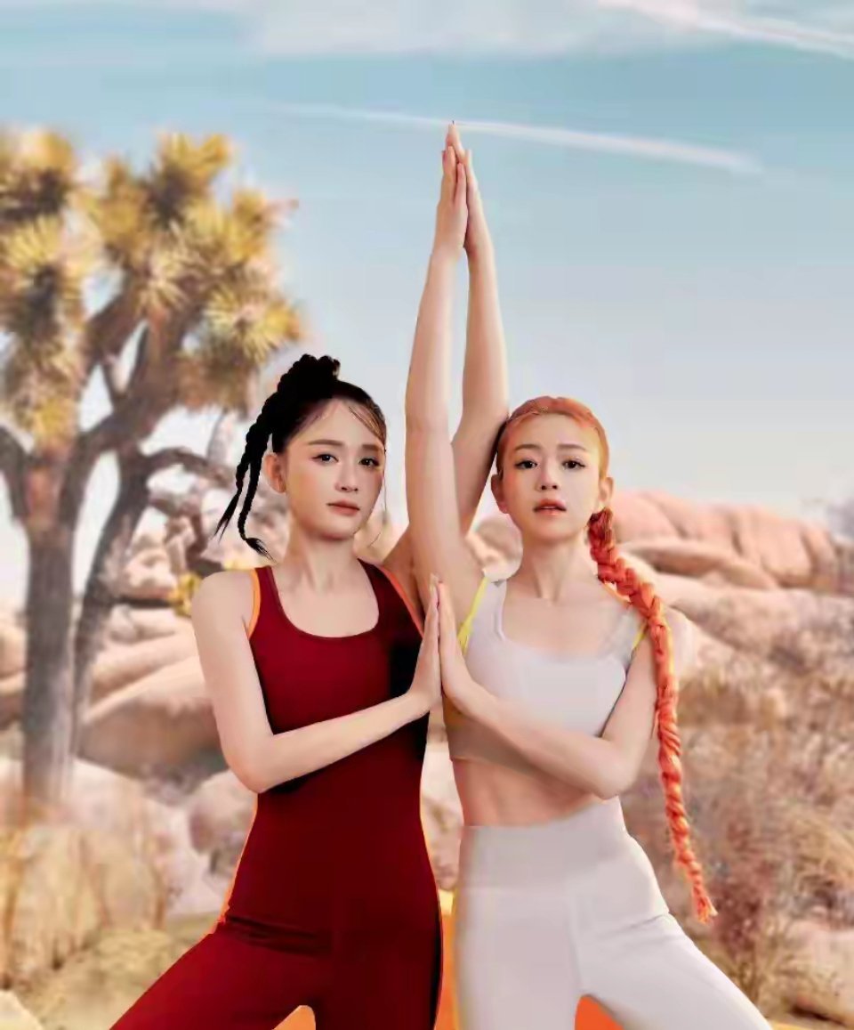 44岁的陈乔恩和40岁的陈妍希一起拍瑜伽大片,两个人保养的好好