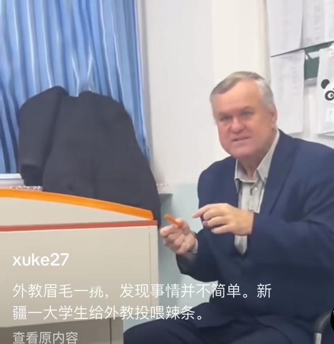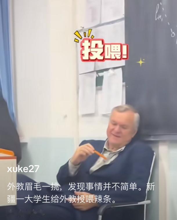 外教被新疆学生投喂辣条,刚开始还不敢吃,用鼻子闻了一下,咬一口后细细品味,突然瞪大了双眼,没想到这玩意味道真的太好