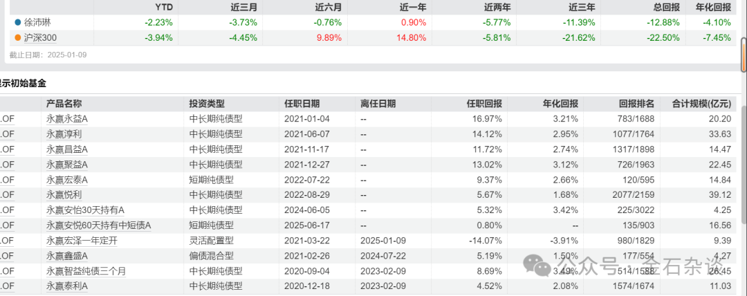 (3)基金经理徐沛琳更为惨烈,虽然21年就开始管理产品,但近1年竟然亏损2.23%,严重跑输基准,做债近三年竟然亏了11%,严重跑输市场。