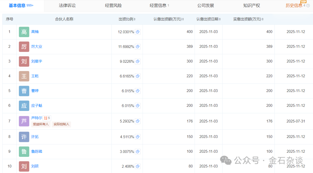 根据天眼查,上海稳进同赢企业管理中心(有限合伙)在11月12日新增30名员工持股。其中,持股较前的几位同学分别为:马宇辉是永赢基金董事长,李文宾西权益投资部联席总经理兼永赢科技驱动混合基金经理;黄玉芳是永赢基金监事,合规负责人;陶毅系永赢基金绝对收益部总经理助理、基金经理;固收基金经理杨野;指数基金经理蔡路平;固收研究部总经理田甜等等。