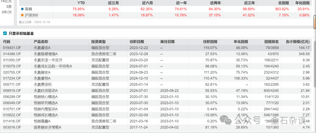 2)和任职时间有关,没有加入员工持股计划的基金经理要么是新人,要么业绩较差。比如:(1)基金经理段伟良,2023年加入永赢,24年9月才管理第一只产品,目前管理规模也只有3.17亿;