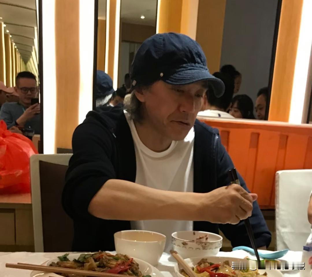 周星驰在餐馆和友人聚餐,被拍到苍老许多,嘴角边法令纹十分深,整个人也很消瘦憔悴,戴着蓝色帽子,同色系外套,依着朴素,一点也没有明星架子。