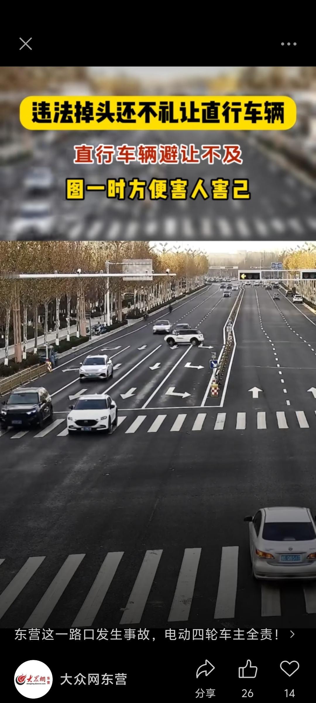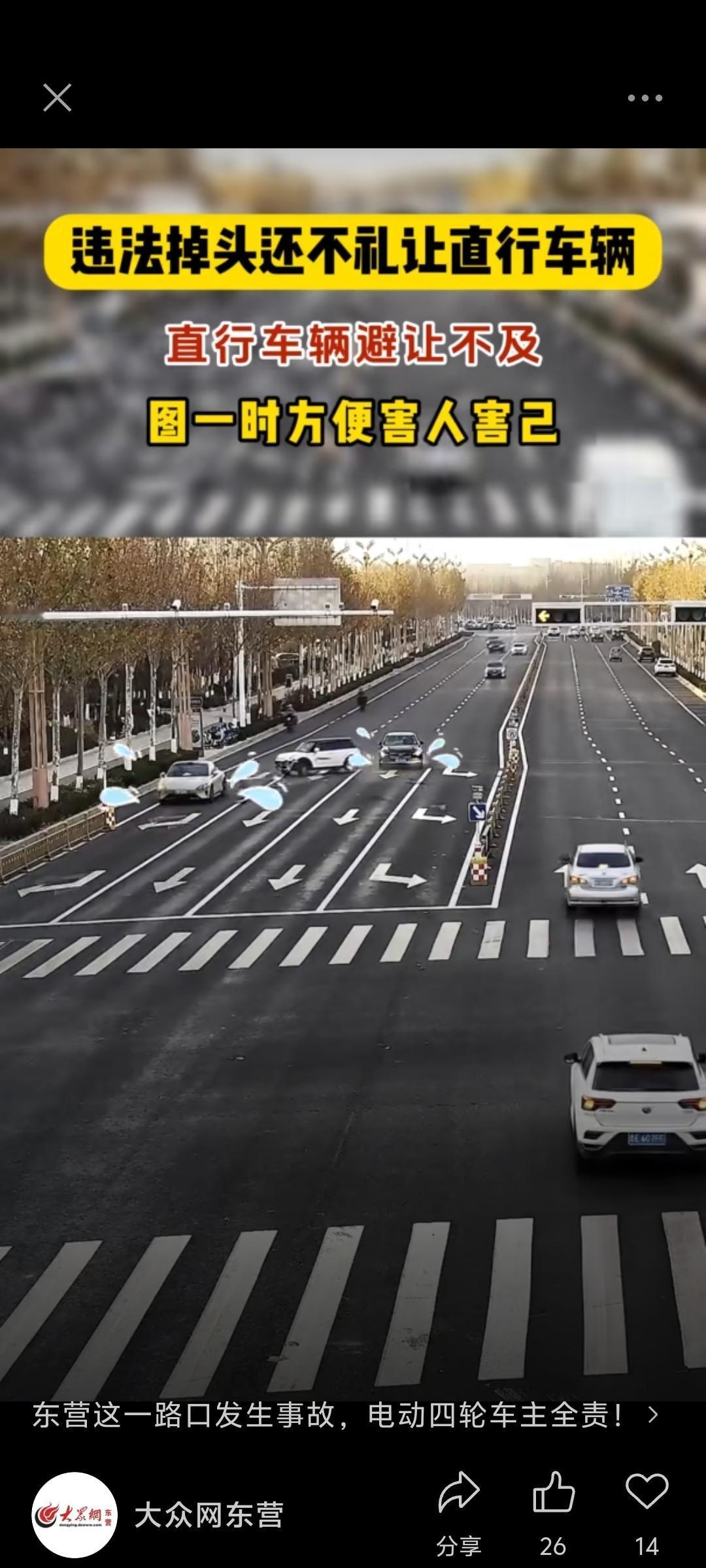 东营这一路口发生事故,电动四轮车主全责! 2025年12月5日7时40分许,山