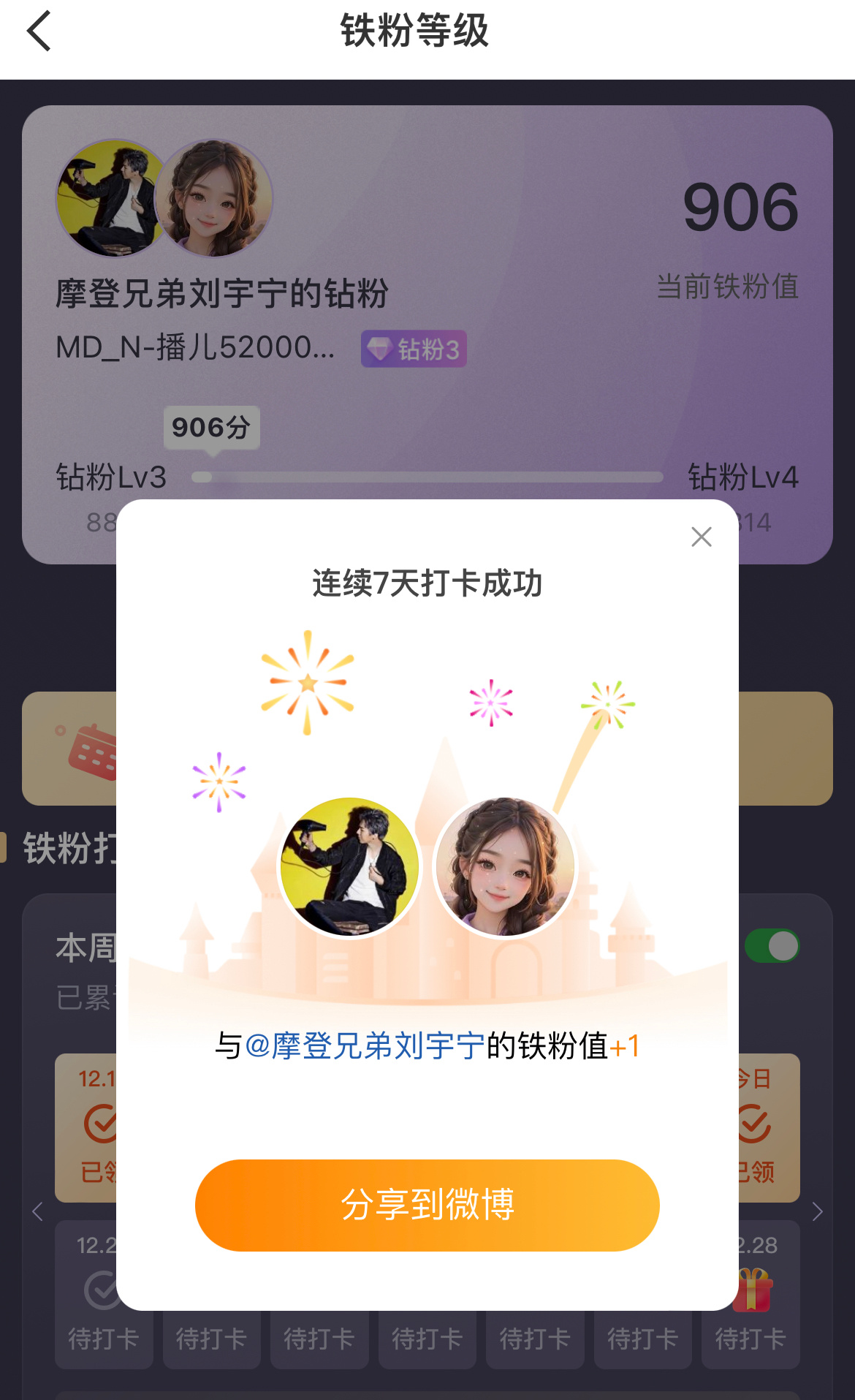 本周我完成了连续7天铁粉打卡,与的铁粉值额外增加1分!刘宇宁,嘴角边情话是你,心里所念所想是你,眼中星辰也是你,余生所爱都是你。老大,棚友们冬至快乐~刘宇宁星光大赏.刘宇宁大连演唱会