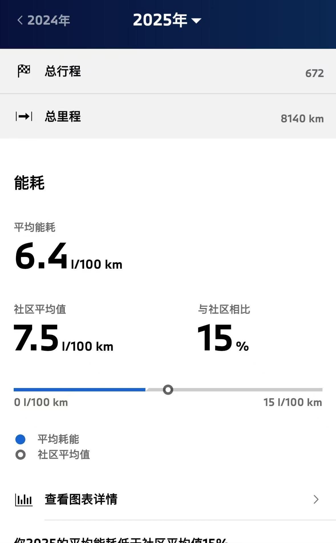 其实养一辆3系,除了保险和保养贵点,平时开车油钱真不贵。我这辆车表显油耗来看的话,抛开欢乐表的情况,油耗才6.4L/km。 又到一年的总结时间了,每年算算账,花多少钱心里有数花钱不慌。 ~ ●车辆信息🚗🚗 23款宝马320li,四门五座三厢车,2.0T纵置四缸发动机,最大马力156匹,最大扭矩250n.m。配置采埃孚8at手自一体变速箱,零百加速9.1秒。车长4838mm,轴距2961mm,悬架为前双球节麦弗逊+后多连杆配置,油箱容积59L,定制胎压为2.5bar。 ~ ●一年里程+加油消费总结 首先今年的里程跑了8140km,主要就是因为家里买了电车,这辆车用的少了不少,评论算下来12个月才跑了8140/12=678km! 今年加油的消费也比较直观,我就在中石化加油,所以有小程序记录,375.8+300+386.8+258.7+381+370+166.3+100+340+403+291+291+300+240=4203.6块钱。 平均下来的话,跑了8140km,用了4203.6块钱,平均每百公里4203.6/81.4=51.6块钱。其实这个百公里消费,也不算多了。 ~ ●表现油耗准不准,是不是欢乐表 具体的话来计算一下就行,虽然说表显油耗6.4L/km,但是我感觉多少有些欢乐表的成分。 去年用加油容量49.15+41.51+12.41+21.6+50.85+50.34+33.78+51.51+41.56+51.34+152=556.05L。 今年跑了8140km,平均百公里556/81.4=6.8L/km,因为目前油箱里还有一些油,所以说这样算出来的油耗相对是偏高的。 这样计算下来,表显6.4的油耗还是比较准确的。 ~ ●一年加油总结 ①首先可以直观的看出来,油耗是真不高,主要原因我考虑有两点。第一点是主要用车场景是城乡郊区,这个场景本来就省油;第二点是家里媳妇开车比较柔,不怎么地板油。 ②还有就是,乙醇汽油和纯汽油开起来确实不太一样,但不确定是心理作用还是真不一样。路过北京加过一次油,感觉车子更有劲了,而且感觉油更耐烧。 ③今年做过一次实验,其实车子最低油耗表现并不是在高速上,而且日常用车+不开空调的时候。今年有一次回老家看着红绿灯读秒跑,中途虽然有减速但是没停车,平均速度35迈左右,油耗才4.1L/km,所以说并不是高速油耗低,而是日常用车+别停车油耗才更低。 【请到“懂车帝APP”查看投票】