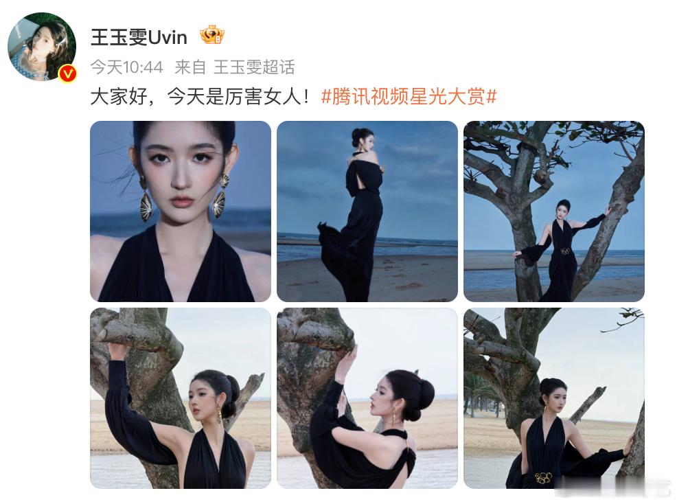 王玉雯 今天是厉害女人星光大赏 星光大赏出图,挂脖质感丝绒黑裙搭配精致优雅的盘发造型,高级感溢出屏幕了,期待她现场的精彩亮相! 星光大赏出图