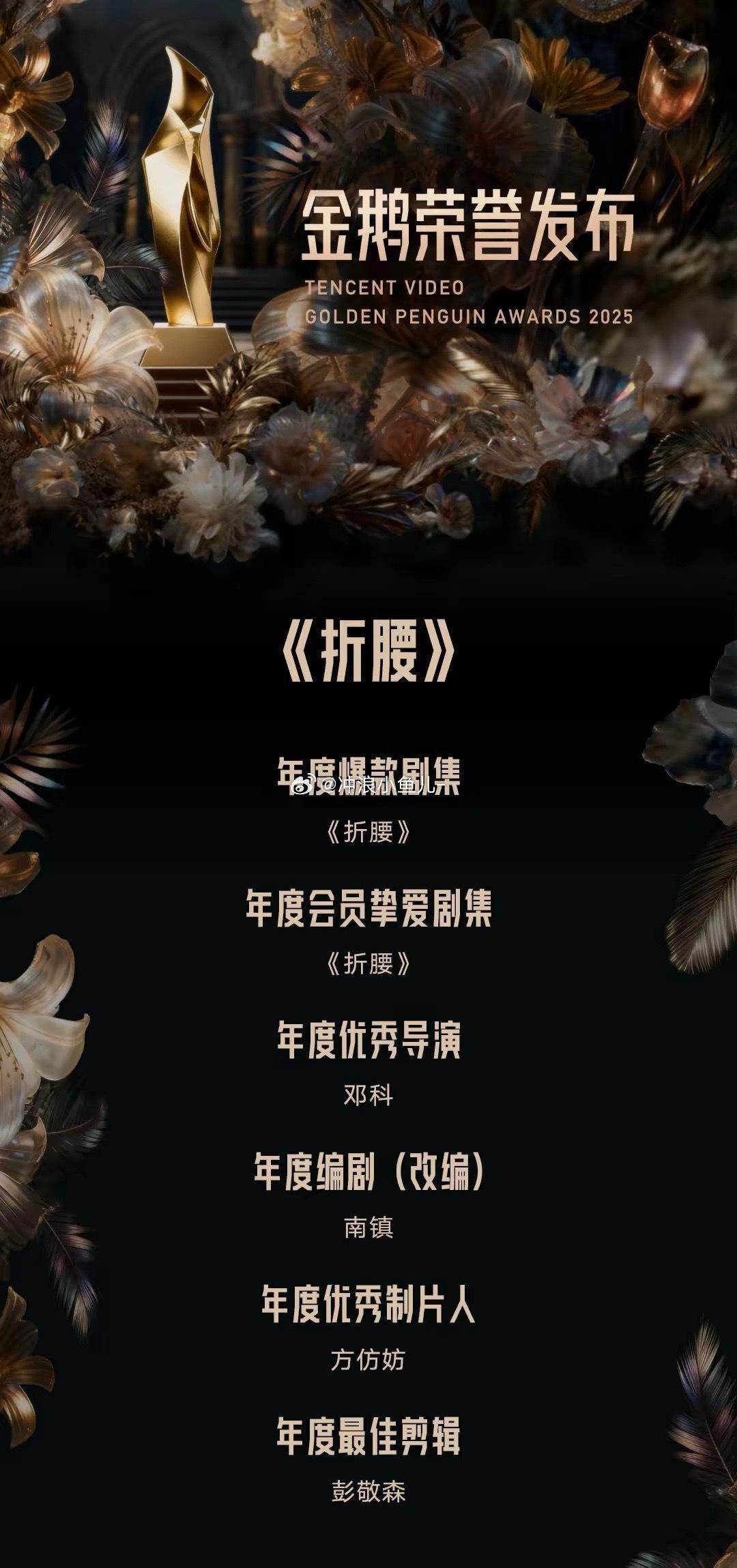 折腰一晚上六个奖折腰一晚上六个奖!年度爆款剧集、年度会员挚爱剧集到手,导演邓科、制片人、编剧、剪辑师还包揽对应的年度优秀导演奖、年度优秀制片人、年度编剧、年度最佳剪辑,直接拿到手软!宋祖儿、刘宇宁强强联手,超强班底用心打磨,质感在线又尊重观众,口碑市场双丰收的全方位认可,这波狂揽六奖绝对的实至名归!全网热点共创计划