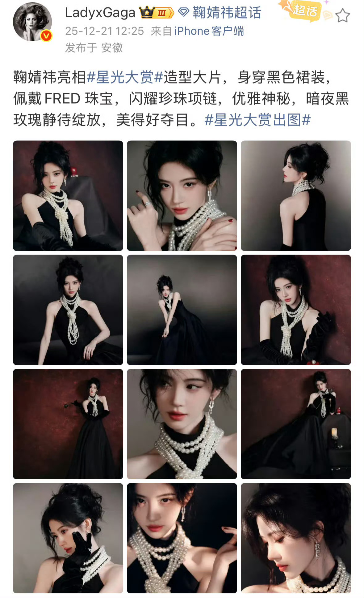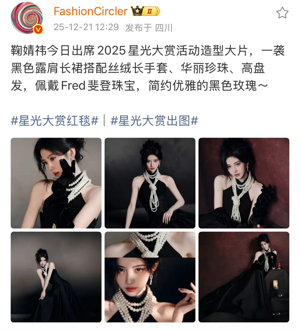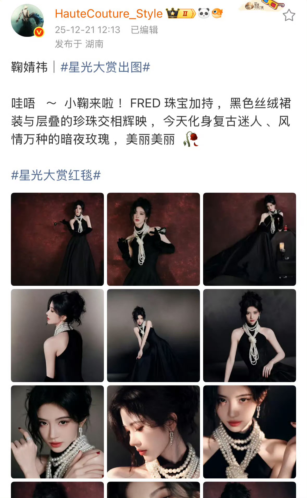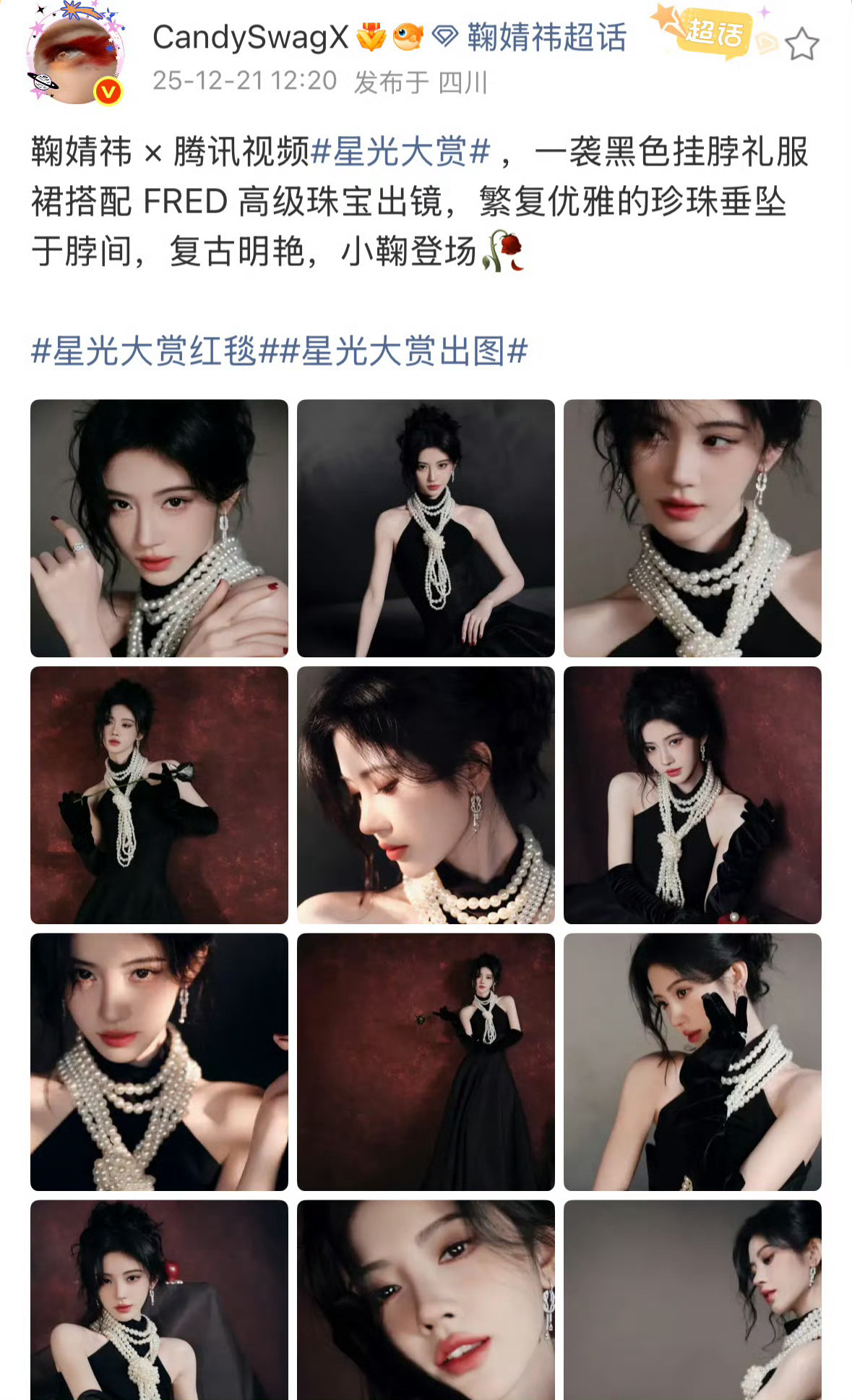 全军出击鞠婧祎珍珠名伶 星光大赏出图