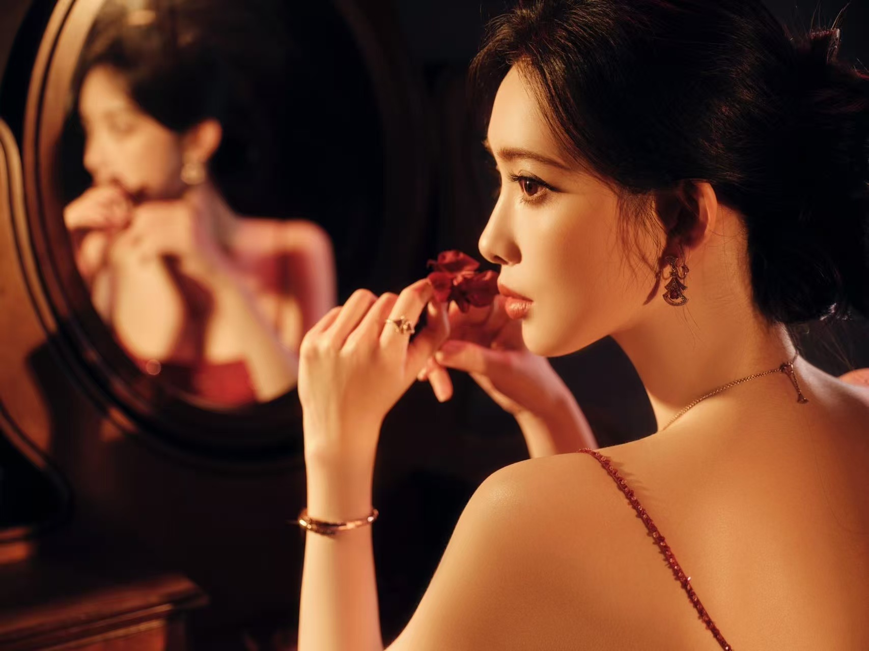 孟子义穿ES孟子义红锦鲤红裙摇曳生姿,泪光流转含情。0秒钓成翘嘴,孟子义的美学狙击,永远精准致命!