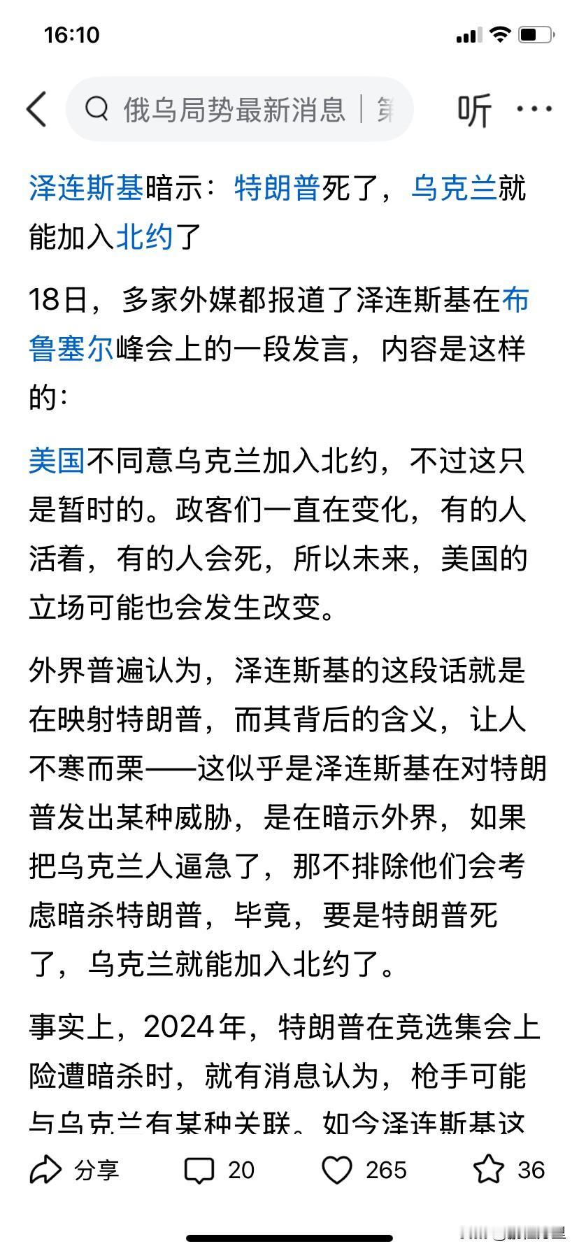 网上传闻,不知真假,如果泽连斯基真的这么说过,也只能是它一厢情愿,政客是一直有变化,总统也是四年换一次,有些立场可能会改变,但美国的最高宗旨不会变,那就是对美国有没有利益,不然的话按泽连斯基现在说的,乌克兰早就应该加入北约了,看看前几年美国和拜登是多么的支持泽连斯基,要钱给钱,要武器给武器,拜登怎么就不让乌克兰加入北约呢,泽连斯基现在怪罪特郎普不让乌克兰加入北约,就是依然认不清自己的棋子身份