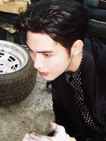 轮到张彬彬给自己提衣摆了 这身造型把他的身材比例拉得很好,黑西装利落、拖尾飘逸,远看就是从电影里走出来的男主角。近看才发现,男主角正提着自己的衣摆,生怕摔一跤,这种真实感反而更圈粉。