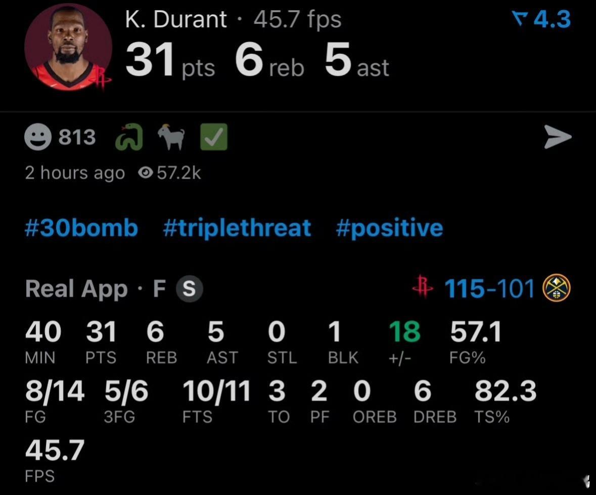 起来就是场大胜!恭喜火箭成功复仇掘金!这场胜利离不开火箭三大改变!第一改变——杜兰特阿杜今天依旧是火箭进攻最稳的点!面对掘金六连胜的气势,他用一场31分6篮板5助攻的全面表现,给出了最冷静的回应。他全场14投8中,命中率超过五成,特别是三分球和罚球都高效得可怕。这不仅仅是数据,更是一种姿态!当球队需要打破僵局时,他的中距离干拔是无解的!当对手试图反扑时,他第四节连得10分直接扑灭了希望!今天阿杜是打高兴了!与上一次加时憾负掘金时气得甩手的沮丧相比,今天命中关键球后跳起的舞步,足以说明一切!把球交给杜兰特准没错!第二改变——谢泼德如果说杜兰特是战略威慑,那么新秀谢泼德就是今晚撕裂防线的战术匕首!他轰下了28分并送出了6次助攻和3次抢断,完美诠释了“初生牛犊不怕虎”。在三战掘金中,他的表现都非常亮眼!他的价值就在于精准打击了掘金的防守软肋!无论是面对瓦兰丘纳斯的沉退,还是约基奇的换防,他用一记记冷血三分予以惩罚。比赛的高光时刻属于他在第三节末段,面对约基奇受犯规困扰的关键节点,谢泼德在1分多钟内连中3记三分,毫不讲理!单节独揽11分,一举将分差拉开到16分,彻底改变了比赛走势!第三改变——乌度卡乌度卡今天的战术板,核心只有两个字:清醒!他做出了一个大胆而正确的决定!严格限制了申京的进攻戏份。回顾上一场,申京虽然砍下33分三双但球队加时输球,其过多的个人强攻破坏了整体节奏。今天,乌度卡显然吸取了教训,他不再让申京去和约基奇硬碰硬,而是明确将进攻发动机的角色还给外线的杜兰特和谢泼德。这一调整解放了全队的进攻空间,让球权得以更流畅地运转到最具威胁的点上。同时,他围绕杜兰特设计的无球战术也更为丰富,确保了核心能在舒服的位置接球。今天对申京的使用,堪称一次成功的“团队教育”。他的数据大幅缩水至8分6篮板4助攻,但作用却可能比上一次的华丽三双更重要。乌度卡没有让他陷入与约基奇的单打消耗战,而是要求他做好掩护、策应和篮板的本职工作。申京也做出了调整,减少了那些低效的“浪投”,更多地为外线队友提供高质量的挡拆,并在防守端贡献力量。这种“牺牲”换来了球队进攻效率!数据显示,当申京出手超过20次时,火箭胜率惨淡。因此,今天的“哑火”并非失败,只能说今天这场胜利得亏乌杜卡!火箭乌杜卡杜兰特NBA新赛季NBA热点NBA球星谢泼德申京火箭丹佛掘金杜兰特